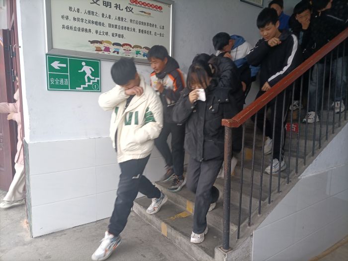 為確保疏散演練安全,學校制定了嚴密的實施方案,設置報警組、疏散引導組、應急處置組、后勤保障組,明確各自崗位職責。10點10分,隨著警報拉響,演練總指揮、黨支部書記、校長梁長業(yè)宣布消防應急疏散演練開始,學校安全工作領導小組迅速啟動防火應急預案,相關安全崗位責任人第一時間到達指定崗位,正在上課的全體師生立即反應,彎曲身體、捂住口鼻,在疏散引導組老師的組織下按預定路線迅速、有序撤離到安全地帶。各班學生到達安全地帶后,以班為單位整隊,各班班主任立即清點人數(shù),并向總指揮報告,整個疏散演練過程既緊張又有序,達到了預期效果。演練結束,王勇老師做總結講話,同時圍繞火災事故及其成因、如何預防火災事故的發(fā)生、火災發(fā)生后如何自救、滅火器的使用方法四個方面,對全校師生進行消防安全知識專題教育。