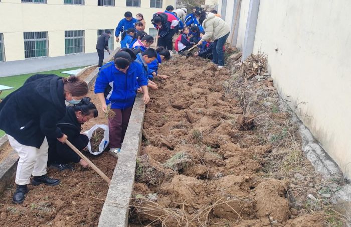 為確保學(xué)生在校內(nèi)能進(jìn)行勞動(dòng)教育,學(xué)校將空閑地開(kāi)辟出來(lái),作為實(shí)踐基地;為落實(shí)學(xué)生在校外的社會(huì)實(shí)踐基地,該校積極聯(lián)絡(luò)當(dāng)?shù)剞r(nóng)民企業(yè)家郝玉明,將與學(xué)校一墻之隔的郝坪村韭菜加工廠作為學(xué)生校外勞動(dòng)實(shí)踐基地。3月19日,郝校長(zhǎng)組織全體師生,對(duì)校內(nèi)的勞動(dòng)基地進(jìn)行翻土、粉碎、平整和清理,為后期各班種植農(nóng)作物做好準(zhǔn)備;顒(dòng)中,學(xué)生熱情高漲,在各班班主任老師的帶領(lǐng)下,從翻地到撿拾石塊、處理荒草,最后平整粉碎土壤,順利完成了修整菜地的任務(wù)。