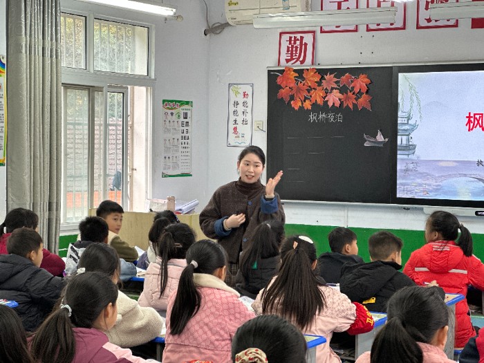 在課堂上,老師們大放異彩。兩河口鎮(zhèn)中心學(xué)校朱姣老師以精美的課件和生動(dòng)的語(yǔ)言,將課文《麻雀》一課講解得繪聲繪色,巧妙地引導(dǎo)學(xué)生深入理解文本內(nèi)容,孩子們積極回應(yīng),課堂氣氛熱烈。金牛小學(xué)劉娟老師則注重啟發(fā)學(xué)生的思維創(chuàng)造力,她的《搭船的鳥(niǎo)》從生活實(shí)例出發(fā),引導(dǎo)學(xué)生們觀察身邊的細(xì)節(jié),鼓勵(lì)學(xué)生們大膽表達(dá)自己的想法和感受。金牛小學(xué)周惠子老師講授《楓橋夜泊》時(shí),通過(guò)多媒體展示優(yōu)美畫(huà)面,將學(xué)生帶入詩(shī)歌意境,聲情并茂地朗誦感染了在場(chǎng)所有人,引導(dǎo)學(xué)生高效理解詩(shī)意。