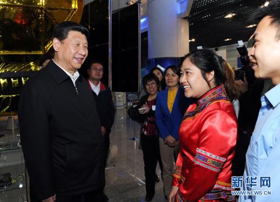 2013年5月4日,習(xí)近平來到中國航天科技集團(tuán)公司中國空間技術(shù)研究院,同各界優(yōu)秀青年代表座談并發(fā)表重要講話。(圖片來源:新華社) 2013年5月4日,習(xí)近平來到中國航天科技集團(tuán)公司中國空間技術(shù)研究院參加共青團(tuán)團(tuán)日活動時,重溫了當(dāng)年這激動人心的時刻,并鼓勵大家:“我們一起來參觀航天科技成就展,感受載人航天精神,激勵包括廣大青年在內(nèi)的全國各族人民為實(shí)現(xiàn)中華民族偉大復(fù)興的中國夢而奮斗! 航天精神,首先是不斷自我突破的創(chuàng)新精神。創(chuàng)新是一個民族進(jìn)步的靈魂,是一個國家興旺發(fā)達(dá)的不竭源泉,也是中華民族最鮮明的民族稟賦。習(xí)近平強(qiáng)調(diào),航天事業(yè)要“堅(jiān)持實(shí)施創(chuàng)新驅(qū)動戰(zhàn)略,大膽創(chuàng)新,銳意改革,腳踏實(shí)地,勇攀高峰”。 航天精神,又是“敢于上九天攬?jiān)隆钡奶剿骶瘛!叭祟愒诤棋挠钪婷媲笆敲煨〉,但人類的探索精神是偉大的!绷?xí)近平感嘆。人類自古就對浩瀚的宇宙空間充滿好奇和向往,中華民族世代傳遞著飛天的傳說和夢想。習(xí)近平希望廣大航天人在航天事業(yè)發(fā)展的征程上勇攀高峰、不斷前行,為建設(shè)航天強(qiáng)國和世界科技強(qiáng)國建功立業(yè)。 航天精神,同時也是“千磨萬擊還堅(jiān)勁”的吃苦耐勞精神。習(xí)近平2016年在會見天宮二號和神舟十一號載人飛行任務(wù)航天員及參研參試人員代表時點(diǎn)贊航天人:“我們培養(yǎng)造就了一支特別能吃苦、特別能戰(zhàn)斗、特別能攻關(guān)、特別能奉獻(xiàn)的高素質(zhì)人才隊(duì)伍,培育鑄就了偉大的載人航天精神! 正是憑借著這種深厚博大航天精神,我國航天事業(yè)走出了一條自力更生、自主創(chuàng)新的發(fā)展道路。 邁向強(qiáng)大 擎起航天力量 “天高地迥,覺宇宙之無窮!碧炜罩系臓N爛星河,激勵著我們不斷探索,凝聚起實(shí)現(xiàn)“中國夢”“航天夢”的強(qiáng)大力量。這種力量穿越時空,歷久彌新。