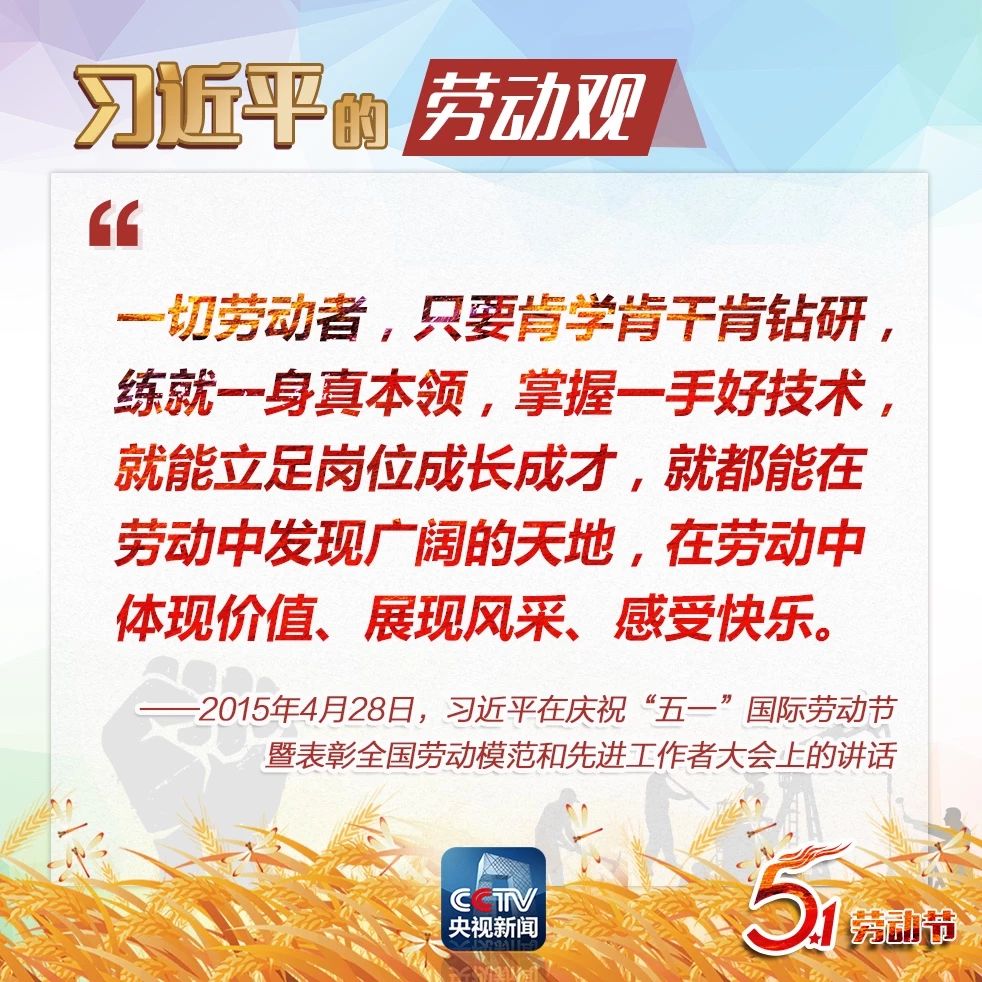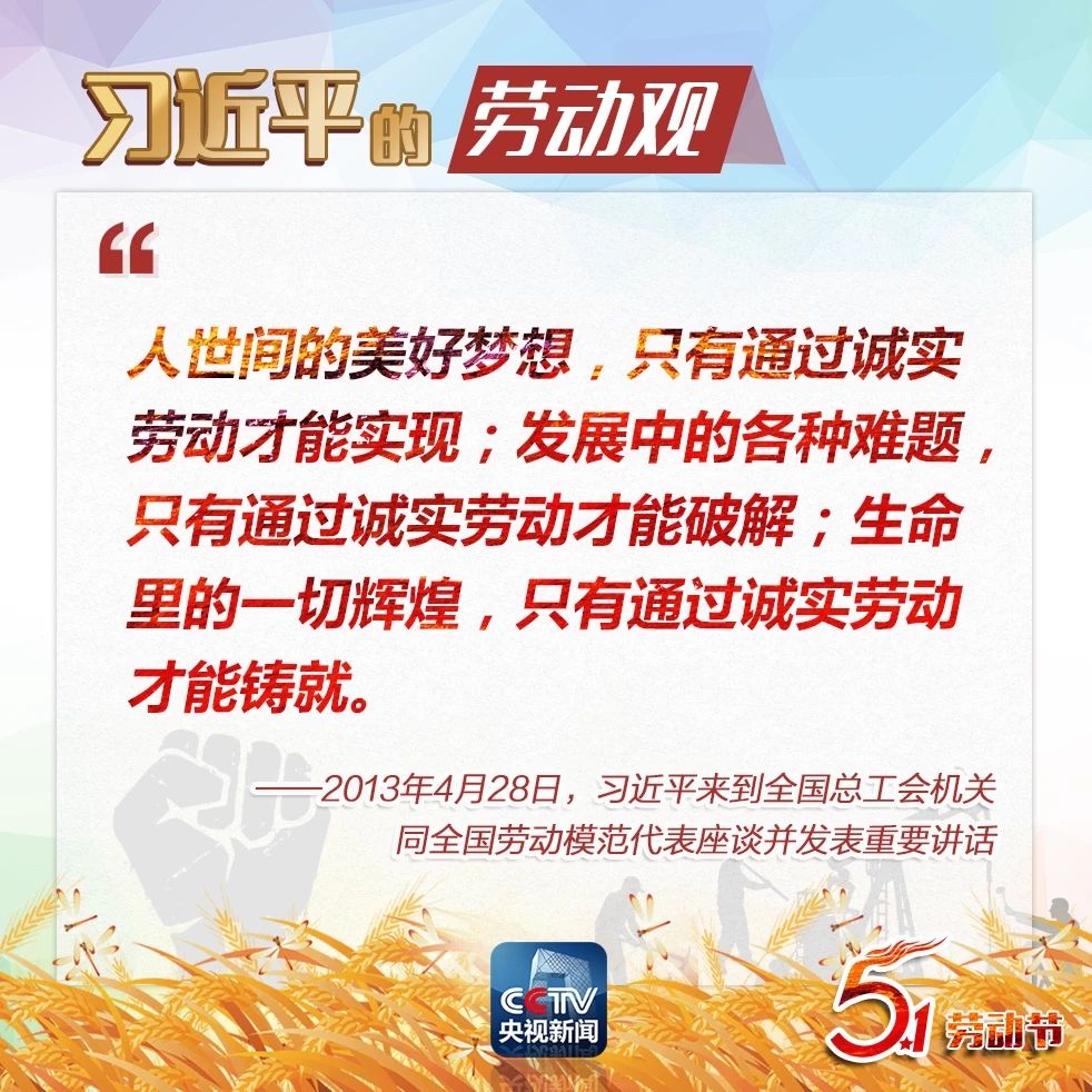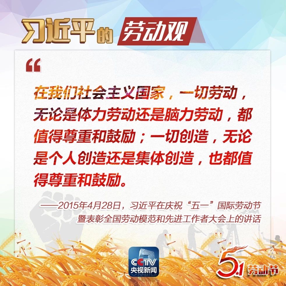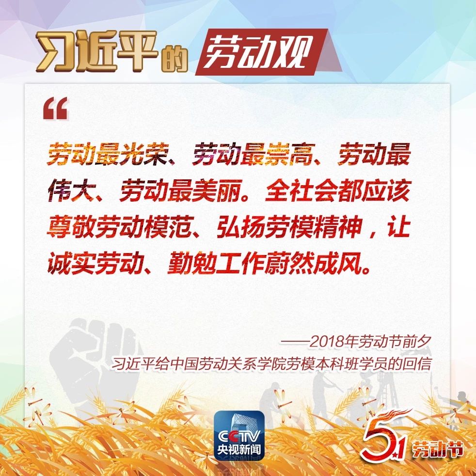 習(xí)近平:讓誠(chéng)實(shí)勞動(dòng)、勤勉工作蔚然成風(fēng)原標(biāo)題:習(xí)近平:讓誠(chéng)實(shí)勞動(dòng)、勤勉工作蔚然成風(fēng) 在“五一”國(guó)際勞動(dòng)節(jié)來(lái)臨之際,中共中央總書(shū)記、國(guó)家主席、中央軍委主席習(xí)近平給中國(guó)勞動(dòng)關(guān)系學(xué)院勞模本科班學(xué)員回信,向他們并向全國(guó)所有勞動(dòng)模范、向全國(guó)廣大勞動(dòng)者致以節(jié)日的問(wèn)候。 習(xí)近平在回信中指出, 你們?yōu)辄h和國(guó)家事業(yè)發(fā)展作出了突出貢獻(xiàn),被評(píng)為勞動(dòng)模范,如今又在讀書(shū)深造,這是對(duì)大家辛勤勞動(dòng)、無(wú)私奉獻(xiàn)的褒獎(jiǎng),也是黨和國(guó)家對(duì)勞動(dòng)者的關(guān)懷。 習(xí)近平強(qiáng)調(diào), 社會(huì)主義是干出來(lái)的,新時(shí)代也是干出來(lái)的。 希望你們珍惜榮譽(yù)、努力學(xué)習(xí),在各自崗位上繼續(xù)拼搏、再創(chuàng)佳績(jī),用你們的干勁、闖勁、鉆勁鼓舞更多的人,激勵(lì)廣大勞動(dòng)群眾爭(zhēng)做新時(shí)代的奮斗者。 習(xí)近平強(qiáng)調(diào), 勞動(dòng)最光榮、勞動(dòng)最崇高、勞動(dòng)最偉大、勞動(dòng)最美麗。 全社會(huì)都應(yīng)該尊敬勞動(dòng)模范、弘揚(yáng)勞模精神,讓誠(chéng)實(shí)勞動(dòng)、勤勉工作蔚然成風(fēng)。 習(xí)近平總書(shū)記一直尊重勞動(dòng)、關(guān)心勞動(dòng)者。黨的十八大以來(lái),他在多個(gè)場(chǎng)合、多次提及勞動(dòng)和勞動(dòng)者。明天就是“五一”勞動(dòng)節(jié),習(xí)近平關(guān)于勞動(dòng)的論述,你還知道多少呢?一起讀圖↓