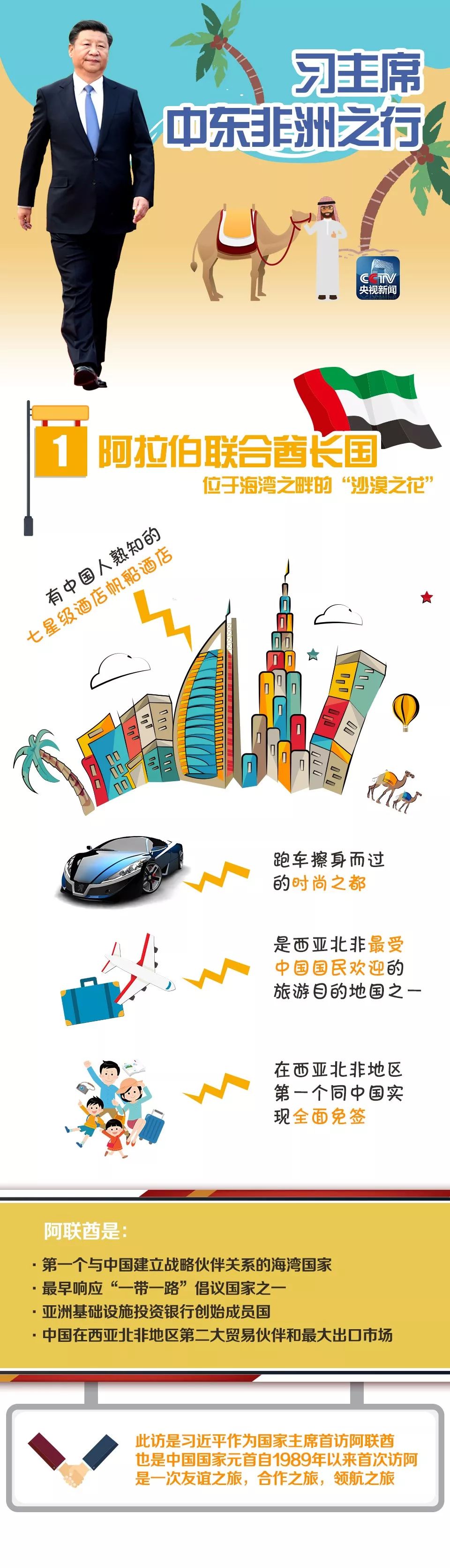 習(xí)近平今年首度出訪,這幾個國家你了解多少?原標(biāo)題:一圖丨習(xí)近平今年首度出訪這幾個國家你了解多少? 季夏之月,赴萬里之約。7月19日至28日,習(xí)近平主席將對阿聯(lián)酋、塞內(nèi)加爾、盧旺達(dá)和南非進(jìn)行國事訪問,出席在南非約翰內(nèi)斯堡舉行的金磚國家領(lǐng)導(dǎo)人第十次會晤,過境毛里求斯并進(jìn)行友好訪問。 此次中東非洲之行是習(xí)近平連任國家主席后的首次出訪,是國際形勢深刻演變背景下中國面向發(fā)展中國家的重大外交行動,意義重大,世界矚目。那么,你對這幾個國家了解多少呢?一圖看↓