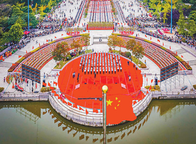 10月1日,江蘇泰州舉行升國旗儀式,慶祝新中國成立70周年。 湯德宏攝(影像中國) 國慶期間,各地紛紛開展豐富多彩的慶;顒,大家把對祖國的熱愛和自豪化為歌聲、融入表演,迎美好佳節(jié),享假日時光。 歌聲嘹亮,唱響愛國豪情 “我和我的祖國,一刻也不能分割……”10月2日上午,廣東省惠州市濱江公園里傳出熱情洋溢的合唱聲,主題為“我和我的祖國”的國慶慶祝活動隆重拉開帷幕,近千名市民聚集在公園廣場,用歌聲唱響愛國豪情,表達對偉大祖國的衷心祝福。濱江公園是惠州“愛我中華——南粵百園慶國慶”主題游園活動的主會場,當天惠州市區(qū)共計10個公園同時開展主題游園活動,內(nèi)容精彩紛呈,節(jié)日氛圍熱烈。 “五星紅旗迎風飄揚,勝利歌聲多么響亮,歌唱我們親愛的祖國,從今走向繁榮富強……”10月1日上午,廣西壯族自治區(qū)百色市右江區(qū)四塘鎮(zhèn)百祥社區(qū)會議室里,慶祝新中國成立70周年“愛黨、愛國、愛家鄉(xiāng)”主題歌會火熱開唱,30多名小學生、60多名易地搬遷貧困戶身著民族服飾,激情昂揚地唱響《沒有共產(chǎn)黨就沒有新中國》《歌唱祖國》等歌曲,同時也唱出了打贏脫貧攻堅戰(zhàn)的信心和決心。 “無論我走到哪里,都流出一首贊歌……”10月1日清晨,河南省鄭州市紫荊山公園熱鬧非凡、喜氣洋洋,人們揮舞著手中的國旗,唱響熟悉的旋律。由河南省委宣傳部、河南日報報業(yè)集團等單位組織開展的“我和我的祖國”主題快閃活動正在這里舉行。來自社會各界的志愿者代表300余人,統(tǒng)一著裝、笑容洋溢,簇擁著國旗,從公園走到地鐵站,走進熙熙攘攘的人群中,高唱贊歌致敬新中國70華誕。 活動豐富,點燃愛國熱情 臺上好戲連連,臺下掌聲不斷。10月2日,甘肅省蘭州市慶祝新中國成立70周年群眾文藝匯演在金城關文化博覽園廣場舉辦。今年,為豐富市民文化生活、歡度國慶黃金周,涵蓋秦腔、歌舞劇等藝術門類的幾十場豐富多彩的演出在蘭州陸續(xù)上演,大家沉浸在藝術氛圍中的同時,也體會到了濃郁的家國情懷。 10月1日晚,以“秋之頌——我和我的祖國”為主題的大型音樂焰火晚會在湖南省長沙市橘子洲頭舉行。深情而熱烈的音樂,喚出萬朵五彩禮花,映紅一張張笑臉,照亮夜空。本次焰火表演,分為《偉大祖國》《錦繡瀟湘》《幸福長沙》《筑夢中華》等篇章,每一篇章都精心設計了相應畫面,精彩紛呈。特別是當“70”特效字幕亮起,漫天國旗紅點燃了觀眾的愛國熱情。 “家鄉(xiāng)的變化越來越大,在回顧過去的同時,真心祝福我們的祖國更加繁榮昌盛,人民生活更加幸福美滿!”國慶期間,河北省邯鄲市博物館舉辦“十月花香——邯鄲市慶祝新中國成立70周年攝影展”。展覽從幾代攝影人手中征集了一批記錄邯鄲歷史變遷的珍貴影像資料,共精選出120幅照片進行展覽,從不同側(cè)面反映了70年來邯鄲各項事業(yè)取得的輝煌成就和欣欣向榮的美好景象。在展示櫥窗前,人們仔細觀賞著一幅幅珍貴的老照片,感慨著家鄉(xiāng)日新月異的變化。 創(chuàng)意無限,延伸愛國深情 10月1日,南京玄武湖公園舉行的“創(chuàng)新名城·盛世綻放”國慶聯(lián)歡活動中,700架無人機在夜空中“畫”出巨大的國旗,贏得現(xiàn)場觀眾經(jīng)久不息的掌聲。當晚,在雄渾的音樂聲中,無人機隊列不斷組合成各種圖案,有“大江飛彩虹,一橋通南北”的南京長江大橋,有南京新地標“南京眼”,也有“我愛中國”“我愛南京”等字樣!百澝滥,輝煌的70年!熱愛您啊,偉大的祖國!”在演員們深情朗誦中,700架無人機組成了一面巨大的五星紅旗,在夜空中格外亮眼奪目,讓人深深震撼。 “新中國生日,我們一起煮長壽面吃,祝福祖國更加繁榮昌盛。”四川省成都市郫都區(qū)戰(zhàn)旗村廣場旁,村民們煮起了一碗碗熱氣騰騰的長壽面。村民易順琴激動地表示,國慶節(jié)吃長壽面意義特殊,祝祖國更富強,祝我們的日子越過越好!帶著家人到戰(zhàn)旗村游玩的彭州市民陳倩,看到這喜慶的場面,也端來一碗香氣撲鼻的長壽面和家人分享,“我今年41歲,和新中國同一天生日,在這舉國同慶的日子里過生日,我真是太幸福了! 青瓷皎皎,彩燈盞盞。國慶期間,燈會民俗與陶瓷藝術在江西景德鎮(zhèn)的璀璨星空下融為一體,以絢麗光影向祖國獻禮。此次景德鎮(zhèn)陶瓷燈會聚焦新中國成立70周年這一主題,共設有各類燈組140余個,平均每天吸引近萬名游客前來參觀!懊恳粋造型都很美,我拍了許多照片,手機快沒內(nèi)存了!眮碜陨虾5挠慰蛥欠矊魰澆唤^口。 (綜合本報記者李剛、龐革平、畢京津、王錦濤、王云娜、張騰揚、申琳、王明峰、戴林峰報道) 編輯:張瑞琪 |