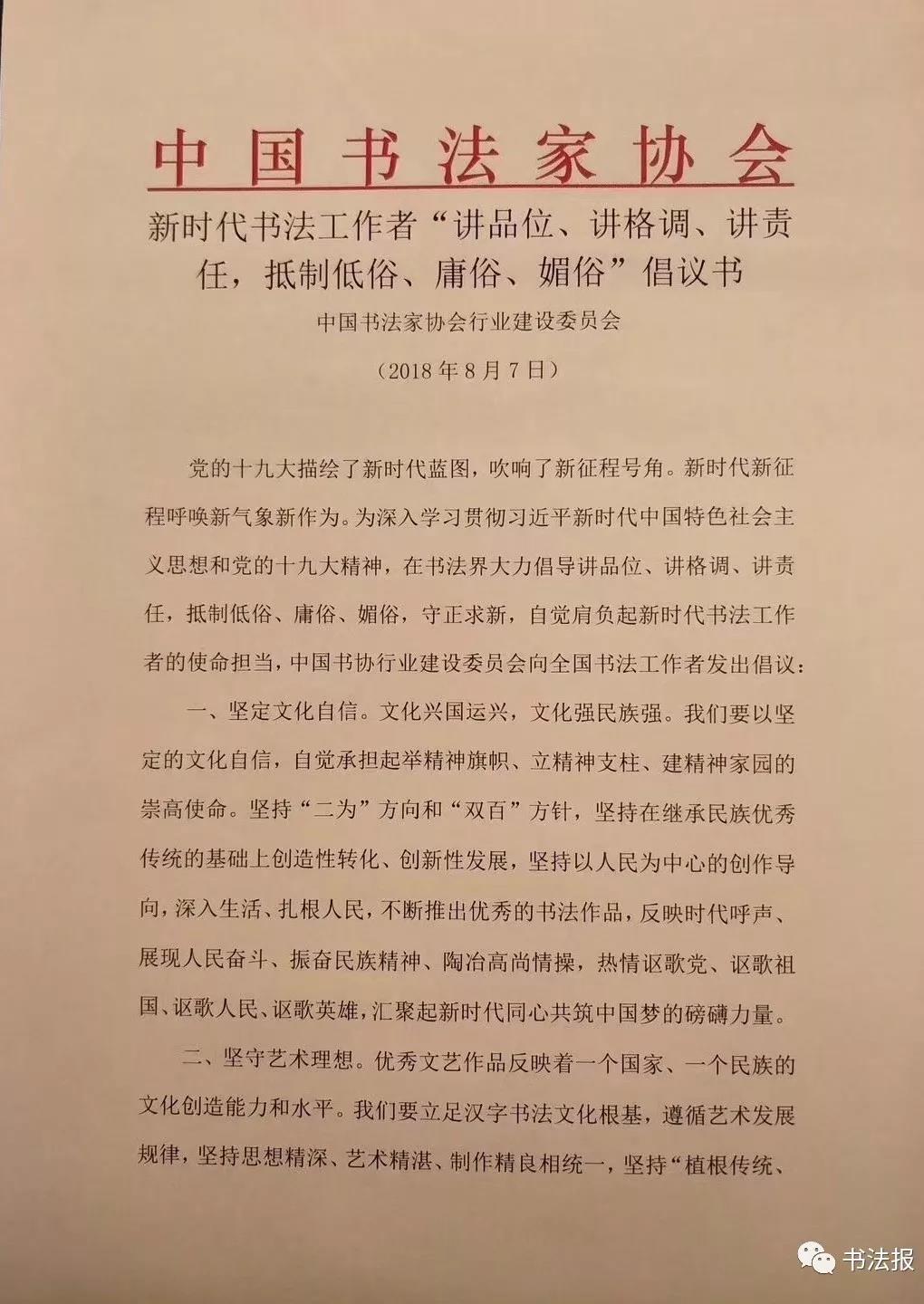 中國書協(xié)發(fā)布“倡議書”,抵制低俗、庸俗、媚俗