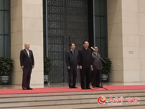 文化和旅游部黨組書記、部長雒樹剛宣布展覽開幕。韋衍行 攝 劉玉珠在講話中指出,流失海外中國文物是我國文化遺產(chǎn)不可分割的組成部分,文物的聚散回歸,與國家治亂興衰息息相關(guān),緊緊牽動中華兒女心弦。黨和政府高度重視流失文物的搶救與保護(hù)工作,從1949年至今,通過執(zhí)法合作、司法訴訟、協(xié)商捐贈、搶救征集等方式,成功促成了300余批次、15萬余件流失海外中國文物的回歸。黨的十八大以來,我國流失文物追索返還工作進(jìn)入了全方位發(fā)展、多層次提高的嶄新階段,文物返還“中國聲音”顯著增強(qiáng),文物追索“中國實(shí)踐”備受矚目,文物回歸取得突破性成就。此次《回歸之路——新中國成立70周年流失文物回歸成果展》,通過流失文物回歸故事,從一個獨(dú)特側(cè)面講述中華民族從站起來、富起來到強(qiáng)起來的歷史進(jìn)程,有力地弘揚(yáng)了愛國主義精神。