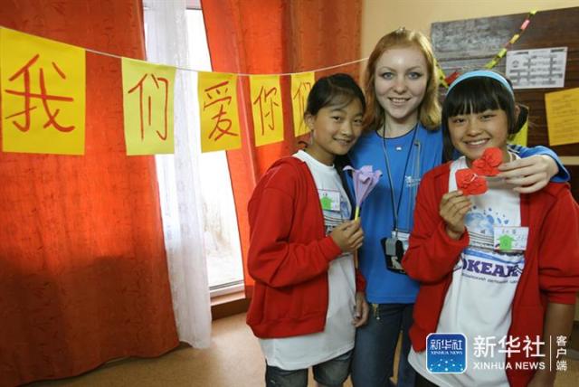 2008年7月21日,在“海洋”全俄兒童中心,兩個(gè)中國(guó)小姑娘和她們的折紙課老師合影留念。新華社記者鄭悅攝 “這個(gè)故事是本地區(qū)人民友好往來(lái)的生動(dòng)例證。” 習(xí)近平主席在12日下午舉行的東方經(jīng)濟(jì)論壇全會(huì)上,深情講述這段傳奇故事,贏得全場(chǎng)熱烈掌聲。 此刻,席浚斐出現(xiàn)在舞臺(tái)上。坐在觀眾席上的習(xí)近平主席指著這位風(fēng)華正茂的小伙子,向坐在身旁的普京總統(tǒng)介紹他的情況。 “請(qǐng)尊敬的習(xí)近平主席見(jiàn)證,請(qǐng)尊敬的普京總統(tǒng)見(jiàn)證。我們倡議:……攜手將中俄睦鄰友好世代相傳,推動(dòng)世界邁向更加美好的明天!” 席浚斐和兒童中心輔導(dǎo)員娜塔莉亞共同宣讀《中俄青少年世代友好宣言》,聲音鏗鏘,在劇場(chǎng)里久久回蕩。