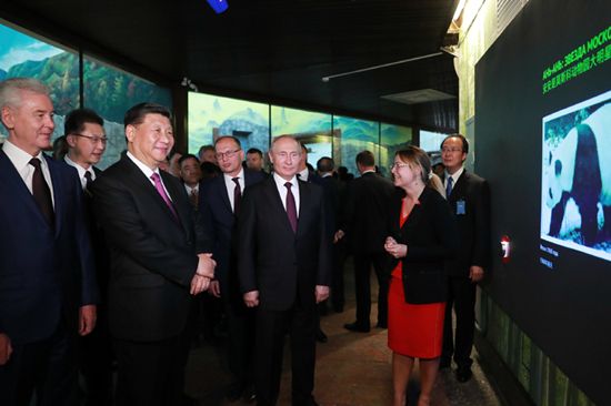 憨態(tài)可掬的“友誼使者”大熊貓如意和丁丁僅有2歲左右,最近他們?nèi)胱×四箍菩录摇箍苿游飯@。這是今年4月習(xí)近平和普京在北京會談時定下的大熊貓合作研究項目。當?shù)貢r間6月5日,兩國元首共同出席了熊貓館開館儀式,締造了中俄兩國人民友誼的又一佳話,促進了中俄多領(lǐng)域間合作繼續(xù)深化。 “中俄兩國都處在國家發(fā)展的關(guān)鍵階段,要攜手并肩實現(xiàn)同步振興!绷(xí)近平指出,“構(gòu)建全方位、深層次、多領(lǐng)域的中俄互利合作新格局,實現(xiàn)更緊密的利益融合,讓兩國人民共享中俄合作成果!薄白龃箅p方共同利益‘蛋糕’!