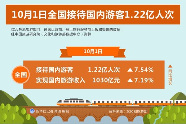 國慶假期首日全國接待國內(nèi)游客1.22億人次