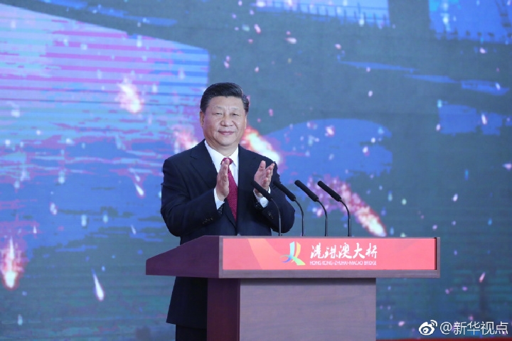 2012年12月,習(xí)近平在這里發(fā)表重要講話,發(fā)出了改革開放再出發(fā)的號召。昔日的灘涂,如今,樹影婆娑、綠草如茵、高樓林立,一派勃勃生機(jī)。 24日上午,習(xí)近平特意來到這里,察看前海發(fā)展變化。 眺望四周,習(xí)近平深有感觸地說,發(fā)展這么快,說明前海的模式是可行的,要研究出一批可復(fù)制可推廣的經(jīng)驗,向全國推廣。深圳、珠海等經(jīng)濟(jì)特區(qū)的成功經(jīng)驗要堅持并不斷完善。實踐證明,我們走改革開放這條路是一條正確道路,只要鍥而不舍、一以貫之、再接再厲,必然創(chuàng)造出新的更大奇跡。 信號二:協(xié)調(diào)推進(jìn)粵港澳大灣區(qū)發(fā)展 粵港澳大灣區(qū)建設(shè)是習(xí)近平總書記親自謀劃、親自部署、親自推動的國家戰(zhàn)略。 23日上午,正在珠?疾斓牧(xí)近平總書記,專程出席了港珠澳大橋開通儀式,宣布大橋正式開通并巡覽大橋。