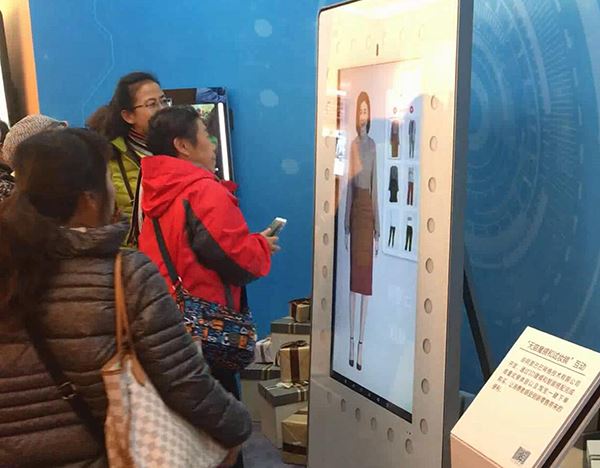 “天貓魔鏡和試妝鏡”吸引了大量女性觀眾 輕觸大屏幕就可以選擇自己想要試穿的服裝 觀看到整體著裝效果 讓消費(fèi)過(guò)程變得更加便利↓↓↓