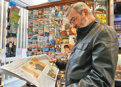 11月27日,當(dāng)?shù)刈x者在報(bào)刊亭閱讀《阿貝賽報(bào)》上刊登的習(xí)近平主席署名文章。 記者 韓曉明攝