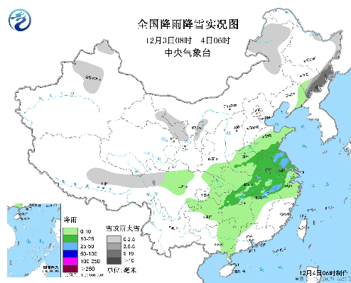 據(jù)人民網(wǎng)北京12月4日電 據(jù)中央氣象臺(tái)網(wǎng)站消息,昨日,吉林東部、黑龍江東南部及山東青島、日照等地降雪或雨夾雪3~8毫米,吉林白山、延邊部分地區(qū)12~13毫米;江蘇中北部、安徽沿淮地區(qū)和南部、江西北部等地出現(xiàn)大雨,安徽黃山、江西景德鎮(zhèn)和上饒部分地區(qū)暴雨。今5時(shí)較昨5時(shí),華北、黃淮、江淮以及內(nèi)蒙古東部、東北地區(qū)大部出現(xiàn)4~8℃降溫,東北地區(qū)大部降溫幅度10~18℃。 今晨,浙江中部、江西東北部、廣東中部等地部分地區(qū)出現(xiàn)大霧。