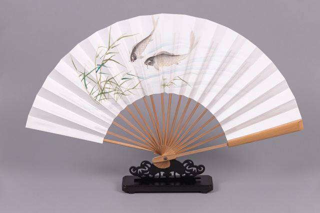 值得一提的是,在一些影視作品中,團(tuán)扇也是為影片和人物增色的重要道具。例如,王祖賢和張曼玉出演的經(jīng)典影片《青蛇》,姐妹二人身披雪紡紗裙,一個(gè)粉白、一個(gè)青紫,輕盈飄逸、漫步河邊。再加上各自手中的一把素色團(tuán)扇,談笑處也學(xué)人故作嬌羞、以扇遮面,很是“人模人樣”。 折扇 折扇的起源眾說紛紜,目前比較主流的說法是折扇由日本傳入中國(guó)!端问贰酚涊d,端拱元年(988年)二月八日,日本國(guó)僧侶嘉因在汴京(今河南開封)覲見了宋太宗,獻(xiàn)上檜扇二十二枚,蝙蝠扇二枚珍貴的禮物。此檜扇與蝙蝠扇就是折扇。北宋詩(shī)人、政治家蘇轍的《楊主簿日本扇》也側(cè)面印證了這一觀點(diǎn): 扇從日本來(lái),風(fēng)非日本風(fēng), 風(fēng)非扇中出,問風(fēng)本何從。 風(fēng)亦不自知,當(dāng)復(fù)問太空。 空若是風(fēng)穴,既自與物同。 同物豈空性,是物非風(fēng)宗。 但執(zhí)日本扇,風(fēng)來(lái)自無(wú)窮。 折扇的別名很多——“撒扇”、“紙扇”、“繖扇”、“掐扇”、“摺迭扇”、“摺疊扇”、“聚頭扇”、“聚骨扇”、“櫂子扇”、“旋風(fēng)扇”,是中國(guó)古代最受歡迎的扇子種類之一。
