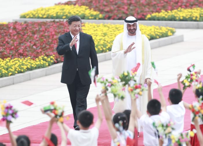 (二)“不同”和“相互”的辯證法 “中阿關(guān)系目標(biāo)遠(yuǎn)大,內(nèi)涵豐富,互利互惠,是百年大計(jì),成為不同地域、不同文化、不同類(lèi)型國(guó)家進(jìn)行戰(zhàn)略合作的典范!睍(huì)談中,習(xí)近平主席這樣闡述中阿關(guān)系的深刻意義。 一年前,習(xí)近平主席訪阿期間,中阿正式建立全面戰(zhàn)略伙伴關(guān)系。當(dāng)時(shí),習(xí)主席表示:相信中阿可以成為相互學(xué)習(xí)、相互借鑒、相互幫助的好朋友、好伙伴,實(shí)現(xiàn)共同發(fā)展繁榮。 “百年大計(jì)”,體現(xiàn)出中方發(fā)展中阿關(guān)系的戰(zhàn)略思維和長(zhǎng)遠(yuǎn)眼光。從三個(gè)“相互”到三個(gè)“不同”,揭示出中阿關(guān)系全方位、高質(zhì)量發(fā)展背后的“辯證法”。 會(huì)談中,對(duì)中阿關(guān)系未來(lái)發(fā)展、國(guó)際地區(qū)熱點(diǎn)問(wèn)題,習(xí)近平主席金句頻出—— 全球化時(shí)代,合作共贏才是各國(guó)相處之道,自我封閉孤立只能損害自身利益。 繼續(xù)在紛繁復(fù)雜中保持定力,在局勢(shì)變化中把穩(wěn)航向,引領(lǐng)推動(dòng)中阿全面戰(zhàn)略伙伴關(guān)系不斷取得新成果,更多更好造福兩國(guó)人民。 海灣地區(qū)和平穩(wěn)定對(duì)整個(gè)中東乃至世界的安全和發(fā)展具有重要意義,應(yīng)該繼續(xù)成為“安全綠洲”,而非新的“動(dòng)蕩之源”。 …… 對(duì)習(xí)主席的話,穆罕默德王儲(chǔ)高度認(rèn)同。他用“重中之重”“最好”等詞匯,表達(dá)對(duì)阿中關(guān)系的高度重視—— 阿方看好中國(guó)發(fā)展的光明前景,將深化阿中全面戰(zhàn)略伙伴關(guān)系作為阿外交的重中之重,不管?chē)?guó)際風(fēng)云如何變幻,阿方都將是中國(guó)的最好戰(zhàn)略合作伙伴。 在涉及中方核心利益和重大關(guān)切問(wèn)題上,阿方將繼續(xù)給予中方有力支持。 值得一提的是,一天前,中國(guó)國(guó)務(wù)院新聞辦公室發(fā)表《新疆的若干歷史問(wèn)題》白皮書(shū)。會(huì)談中,習(xí)近平主席對(duì)阿方在涉疆問(wèn)題上給予的寶貴支持表示感謝。穆罕默德王儲(chǔ)則明確表態(tài): 阿方高度贊賞中國(guó)為保護(hù)少數(shù)民族權(quán)益、促進(jìn)民族團(tuán)結(jié)和睦所作努力,愿與中國(guó)加強(qiáng)安全合作,共同打擊包括“東突”在內(nèi)的恐怖極端勢(shì)力,共同維護(hù)國(guó)家安全和地區(qū)安寧。 (三)“中文熱”背后的戰(zhàn)略選擇 穆罕默德王儲(chǔ)是阿聯(lián)酋首任總統(tǒng)扎耶德第三子,也是現(xiàn)任總統(tǒng)哈利法的弟弟。他對(duì)中國(guó)很感興趣,曾于1990年5月隨扎耶德來(lái)華,并于2009年8月、2012年3月、2015年12月三次訪華,同習(xí)近平主席多次會(huì)面。 2015年的那次中國(guó)之行,讓穆罕默德王儲(chǔ)感受到中國(guó)發(fā)展的蓬勃力量,看到了阿中合作的巨大潛力,更加堅(jiān)定了“向東看”的選擇。 用阿聯(lián)酋《聯(lián)邦報(bào)》去年一篇社論的話說(shuō),“中國(guó)發(fā)展道路給阿拉伯國(guó)家政治精英開(kāi)辟了新的視野”;促使他們思考“如何在短時(shí)間內(nèi)實(shí)現(xiàn)巨大的跨越式發(fā)展”。 去年7月,習(xí)近平主席訪阿,穆罕默德王儲(chǔ)幾乎全程陪同。這在阿聯(lián)酋外交中十分罕見(jiàn)。新華社記者當(dāng)時(shí)記錄的幾個(gè)細(xì)節(jié),體現(xiàn)出穆罕默德王儲(chǔ)的用心—— 習(xí)近平主席到訪前,穆罕默德王儲(chǔ)向中方提出一個(gè)請(qǐng)求:希望習(xí)主席訪問(wèn)時(shí),簽名贈(zèng)送兩本阿文版《習(xí)近平談治國(guó)理政》。一本收藏在總統(tǒng)府圖書(shū)館,一本自己閱讀。 習(xí)近平主席到訪第二天,穆罕默德王儲(chǔ)特意安排自己的侄女用阿中雙語(yǔ)主持合作文本交換儀式。這位19歲的姑娘,從小在阿布扎比第一所中文學(xué)校學(xué)習(xí)中文。 22日北京的歡迎儀式上,也出現(xiàn)了一些阿聯(lián)酋小朋友的身影——