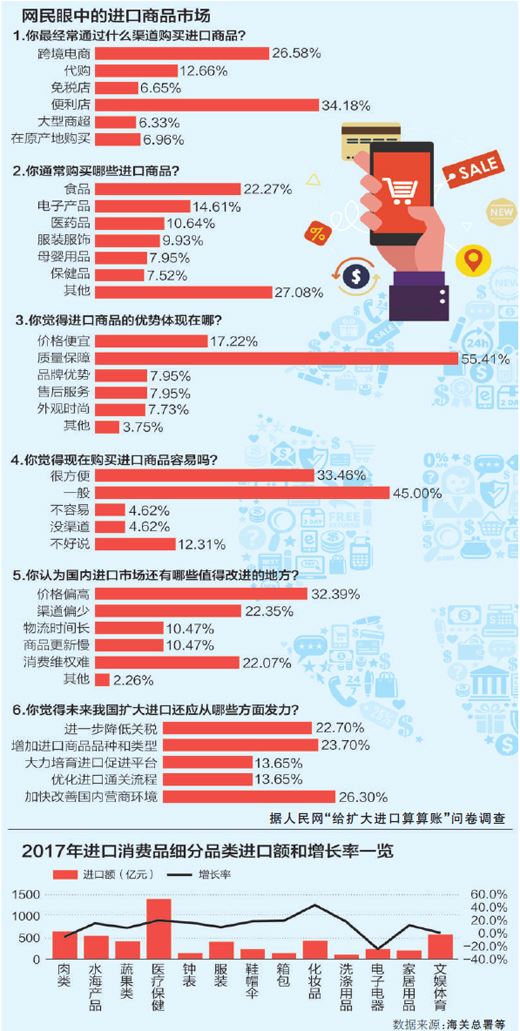 11月10日,首屆中國國際進口博覽會交易額最終定格在578.3億美元,這不僅讓全球看到中國擴大進口的行動和決心,也讓各國企業(yè)看到中國市場的巨大機遇和紅利。今年以來,在已然不小的基數(shù)上,我國進口再次跑出加速度——海關總署數(shù)據(jù)顯示,今年前11個月,我國貨物貿(mào)易進口1.97萬億美元,同比增長18.4%。 進口領域的這些變化,引來不少關注和討論。有人說,進口是花錢,出口才是賺錢,所以出口比進口好,這種觀點對不對?世界經(jīng)濟增速放緩,保護主義、單邊主義勢頭上升,在此背景下,我國為什么要主動擴大進口?國內(nèi)消費持續(xù)升級,未來商品進口將呈現(xiàn)哪些趨勢?擴大進口應當從哪些方面發(fā)力?近日,本報記者深入走訪了部分消費者、企業(yè)和業(yè)內(nèi)專家,給擴大進口算算賬,也給上述問題尋找答案。 擴大進口為哪般? ●主動擴大進口,就是要充分發(fā)揮進口的重要作用,加快外貿(mào)“轉動力、調(diào)結構”,推動形成全面開放新格局 ●主動擴大進口,既是滿足人們美好生活向往的積極作為,也是推動供給側結構性改革的有效措施,還是實現(xiàn)互利共贏、構建人類命運共同體的重要內(nèi)容 “我經(jīng)常來逛這家超市,主要是看中里面的進口商品種類豐富!痹诒本┦谐枀^(qū)大望路SKP購物中心的BHG(北京華聯(lián))精品超市內(nèi),消費者李鑫對記者說。在他的購物車里,進口大米、啤酒、葡萄酒、洗發(fā)水、牙膏甚至拖鞋,堆得滿滿當當。 記者在這家超市發(fā)現(xiàn),專門選購進口商品的消費者真不少,在超市收銀臺前排起了長隊。不僅是超市,SKP購物中心其他進口商品同樣受到追捧。作為我國進口商品最集中的高端商場,北京SKP擁有全球1000多個國際著名品牌。2017年度,北京SKP銷售額高達125億元,位列全球同業(yè)第二,僅次于倫敦哈羅德百貨,進口商品的火爆可見一斑。 近年來,中國積極主動擴大進口,并取得明顯成效。2017年,中國貨物進口額為1.84萬億美元,是2002年即加入WTO后第一年的6.2倍;服務進口4676億美元、逆差2395億美元,分別是2002年的10.1倍和798.3倍。中國已成為世界第二大貨物貿(mào)易進口國和服務貿(mào)易進口國,貨物和服務年進口值均占全球1/10左右。 進口大步發(fā)展的同時,也有一些人的觀念沒轉過來:我們以前一直強調(diào)出口的重要性,提出打造出口強國,現(xiàn)在為什么要主動擴大進口? “隨著中國經(jīng)濟發(fā)展和開放進程的不斷深入,我們對進口作用的理解也不斷加深!敝袊缈圃菏澜缃(jīng)濟與政治研究所研究員東艷認為,主動擴大進口,就是要在改革開放40年實踐經(jīng)驗的基礎上,落實新發(fā)展理念,充分發(fā)揮進口的重要作用,加快外貿(mào)“轉動力、調(diào)結構”,推動形成全面開放新格局。 ——主動擴大進口,是滿足人們美好生活向往的積極作為。 中國貿(mào)促會研究院國際貿(mào)易研究部主任趙萍認為,當前,我國消費結構加快升級,中等收入群體不斷擴大,消費需求多樣性日益增長。近10年來,我國居民境外消費年增長率均達到兩位數(shù)。通過合理擴大高品質(zhì)消費品和服務進口,有利于豐富國內(nèi)消費選擇,引導境外消費回流,滿足人民群眾個性化、多元化、差異化消費需求。 “在我眼里,進口商品為消費增加了新選擇!崩铞握f,前幾年買東西,對個性化要求并不是特別高。比如買洗發(fā)水,以前是洗得干凈、香味合適就行了,F(xiàn)在不一樣了,他更看重洗發(fā)水的功能,包括防脫發(fā)、防頭屑等!皣鴥(nèi)的產(chǎn)品不一定都能滿足我的這些需求,自然而然就想看看有沒有合適的國外商品!崩铞握f。 ——主動擴大進口,是推動供給側結構性改革的有效措施。 鼎德華夏農(nóng)業(yè)科技集團是國內(nèi)一家深耕智慧農(nóng)業(yè)的企業(yè),今年從以色列進口智能灌溉生產(chǎn)設備。跟使用國產(chǎn)設備相比,生產(chǎn)成本節(jié)省15%—20%,產(chǎn)量提高10%—15%,一年就能節(jié)約750萬元!斑@筆買賣相當劃算!奔瘓F董事長魏剛說,“通過引進、消化、吸收先進技術,還能提升工人的技術水平以及企業(yè)對客戶服務的水平,增強了企業(yè)在市場競爭環(huán)境中的生存能力! 商務部國際貿(mào)易經(jīng)濟合作研究院國際市場研究所副所長白明認為,結構合理、規(guī)模適度的進口,對于改善國內(nèi)生產(chǎn)要素供給具有積極作用。同時,通過進口優(yōu)質(zhì)產(chǎn)品,能倒逼我國企業(yè)降低成本、改進工藝、創(chuàng)新技術,提升產(chǎn)業(yè)競爭優(yōu)勢。 ——主動擴大進口,是實現(xiàn)互利共贏、構建人類命運共同體的重要內(nèi)容。 “中國的發(fā)展離不開世界。作為一個新興大國,中國追求的是平等互利的雙贏、多贏!眹鴦赵喊l(fā)展研究中心副主任隆國強認為,中國已位居世界第二大經(jīng)濟體、第一大工業(yè)國、第一大外匯儲備國,消費市場潛力巨大。積極主動擴大進口,能夠把中國的發(fā)展成果和紅利更多惠及全球。這是中國履行國際責任和改善國際關系的一個重要舉措,體現(xiàn)了大國的責任擔當。再進一步看,在當前貿(mào)易保護主義抬頭、多邊貿(mào)易體制受到挑戰(zhàn)的背景下,中國積極主動擴大進口,讓世界各國分享中國發(fā)展的機遇,更是中國用實際行動踐行和平發(fā)展、打造人類命運共同體倡議的重要體現(xià