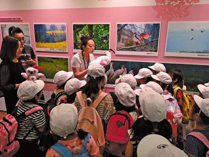 陜西日報訊 (記者 師念)6月27日,綿綿細雨給大阪送去了清涼,但參觀者前往市立自然史博物館觀看“友好之輪 和美世界——朱鹮文化展”的熱情持續(xù)升溫。 一大早,日本南天邊小學(xué)和新金岡東小學(xué)的學(xué)生們就耐心地在博物館門口等候。開館后,孩子們在老師的帶領(lǐng)下井然有序地入場。 用樹枝搭建的朱鹮巢、可愛的朱鹮抱偶深深地吸引了孩子們的目光。大家爭先恐后地想要抱抱“朱鹮”,與吉祥鳥親密接觸;戴上耳機聆聽中日韓關(guān)于朱鹮的歌曲展臺前,已排起長長的隊伍;明信片蓋章臺前,孩子們仔細地挑選著自己喜歡的明信片并小心翼翼地蓋上郵戳;在國際少年兒童朱鹮繪畫作品展區(qū),孩子們看到同齡小朋友的精彩作品后,紛紛表示回去后也要學(xué)習(xí)畫朱鹮。 展廳中還有一件特殊的“寶貝”——朱鹮“龍龍”的標(biāo)本。據(jù)了解,1994年9月,中國借給日本一對朱鹮“龍龍”和“鳳鳳”,當(dāng)年12月,“龍龍”在日本朱鹮之鄉(xiāng)佐渡飼養(yǎng)中心死亡。次年6月,“龍龍”(標(biāo)本)和“鳳鳳”由日本派專人送回故鄉(xiāng)漢中洋縣。此后,“龍龍”(標(biāo)本)一直存放在洋縣朱鹮宣教館。這次是“龍龍”(標(biāo)本)24年前從日本歸來后首次赴日。展覽通過全息投影技術(shù),將“龍龍”“復(fù)活”,中國第一代護鹮人路寶忠在現(xiàn)場為孩子們講述了“龍龍”的故事。 到了VR實景體驗區(qū),日本小朋友更是興奮不已,禁不住喊道“我看到朱鹮啦!” 一系列的體驗活動,讓現(xiàn)場氛圍十分火熱。在被問到是否喜歡朱鹮時,孩子們都說非常喜歡,希望有機會能親眼看到朱鹮在天空中飛翔的美麗身姿。 編輯:龐阿倩 |