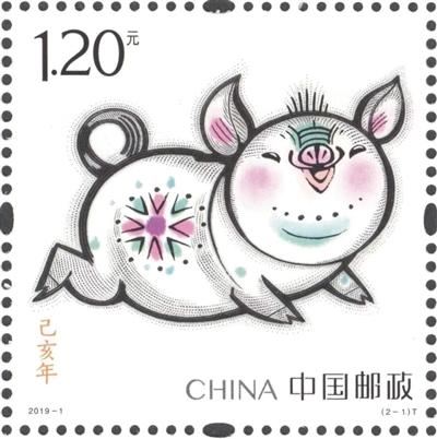 《己亥年》特種郵票1套2枚,圖案名稱分別為“肥豬旺!薄ⅰ拔甯}R聚”,全套郵票面值2.4元