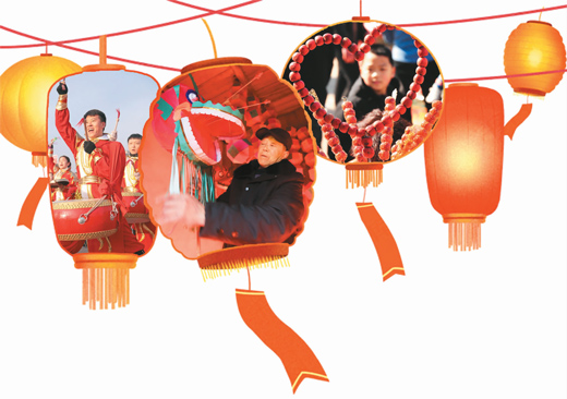 左圖:山西省臨汾市襄汾縣鑼鼓隊(duì)走上街頭表演,用歡快的鑼鼓聲喜迎元宵佳節(jié)。 李現(xiàn)俊攝(新華社發(fā)) 中圖:江西省九江市都昌縣陽峰鄉(xiāng)龍山村村民盧名林在趕制花燈。 傅建斌攝(人民視覺) 右圖:河北省任丘市呂公堡鎮(zhèn)后李花村舉辦“糖墩兒節(jié)”,吸引眾多游客前來賞民俗、鬧元宵。 新華社記者 牟 宇攝