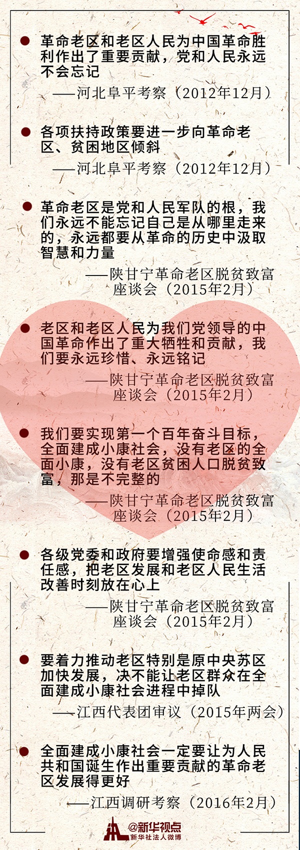 細心的人不難發(fā)現(xiàn),今年1月2日,在《告臺灣同胞書》發(fā)表40周年紀念會上,習(xí)近平總書記發(fā)表重要講話,強調(diào)“兩岸要應(yīng)通盡通”,并“可以率先實現(xiàn)金門、馬祖同福建沿海地區(qū)通水、通電、通氣、通橋”。 ——“老區(qū)蘇區(qū)”,指的是革命老區(qū)、中央蘇區(qū)?倳浽谥v話中表示“要飲水思源,決不能忘了老區(qū)蘇區(qū)人民”。 如何讓老區(qū)蘇區(qū)人民快點脫貧奔小康,總書記念茲在茲。言談之間,充滿對老區(qū)蘇區(qū)人民的深情厚誼。