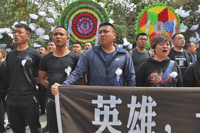 昨日上午,民眾前往西昌市殯儀館祭奠英雄。700多名涼山退伍老兵唱軍歌,為犧牲英雄送行。