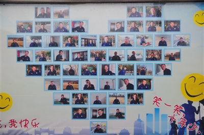 昨日下午,西昌大隊(duì)的駐地,一個(gè)櫥窗里貼著心形的“笑臉墻”。這當(dāng)中有26人再也無法返回駐地。