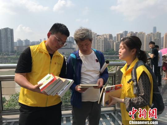 中新網(wǎng)重慶4月21日電 (記者 鐘旖)你有多久沒有看完一本紙質(zhì)書了?走在街頭,有人提出要送你一本書,你會(huì)接受嗎?21日,在重慶長江索道、洪崖洞、李子壩觀景平臺(tái)等特色旅游“打卡地”,不少市民便收到了這份來自重慶圖書館工作人員和志愿者們的贈(zèng)書驚喜。