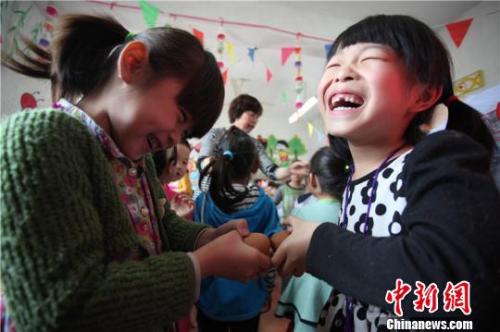 資料圖:孩子們進行“斗蛋比賽。竇躍文 攝