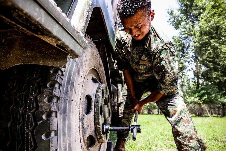 戰(zhàn)士在訓(xùn)練中 雷鋒當(dāng)年“苦練駕駛功”“請戰(zhàn)上前線”等事跡,激勵著一代代“雷鋒班”戰(zhàn)士精武強(qiáng)能、備戰(zhàn)打仗。如今,“雷鋒班”戰(zhàn)士們熟練掌握12大類21種車型裝備操作技能,練就聽聲辨位排故障、無千斤頂更換輪胎等10種修理絕活。