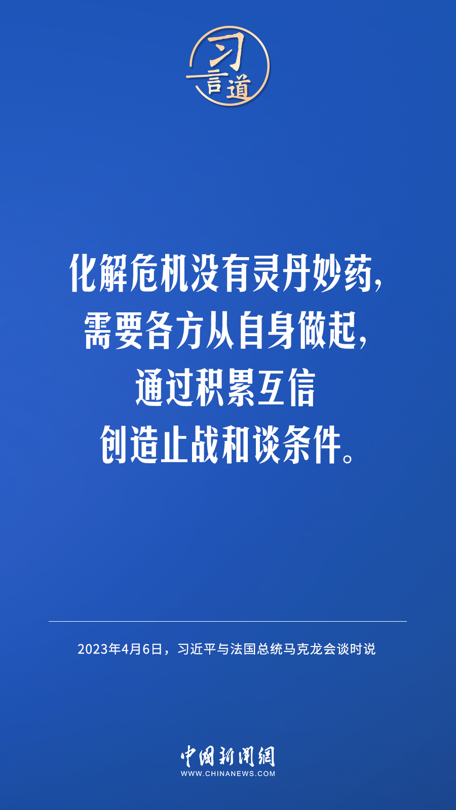 習(xí)言道|化解危機(jī)沒有靈丹妙藥4月6日下午,國家主席習(xí)近平在人民大會堂同來華進(jìn)行國事訪問的法國總統(tǒng)馬克龍舉行會談。習(xí)近平指出——