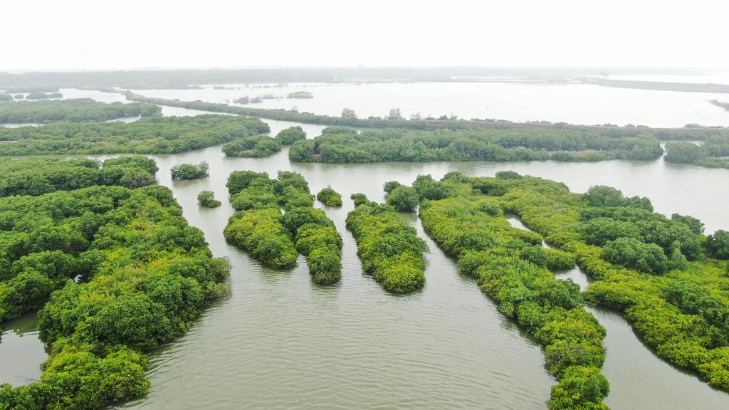 這是4月10日拍攝的廣東湛江紅樹林國家級自然保護區(qū)麻章金牛島片區(qū)(無人機照片)。新華社記者 王瑞平 攝 如今,廣東湛江紅樹林國家級自然保護區(qū)總面積20278.8公頃,其中紅樹林有林面積7228公頃,占全國紅樹林總面積的33%,是我國沿海紅樹林面積最大的自然保護區(qū)。