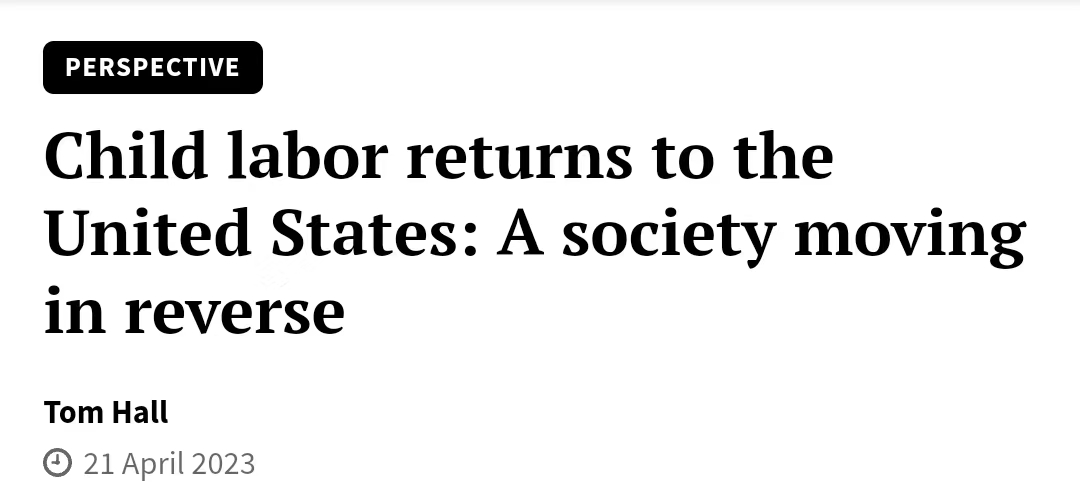 【世界說】美國又一州擬廢除童工限制 美媒:被扔進歷史垃圾箱的做法又回來了,這是社會的大倒退!中國日報網4月25日電 美國艾奧瓦州參議院本月提出一項法案,取消該州對童工的諸多限制,擴大未成年人可以合法工作的類型,延長最長輪班時間,甚至允許企業(yè)讓未成年人工作至深夜。 對此,美國世界社會主義網站(World Socialist Web Site)21日刊文稱,雇傭童工在美國的回歸,是這個社會的倒退。