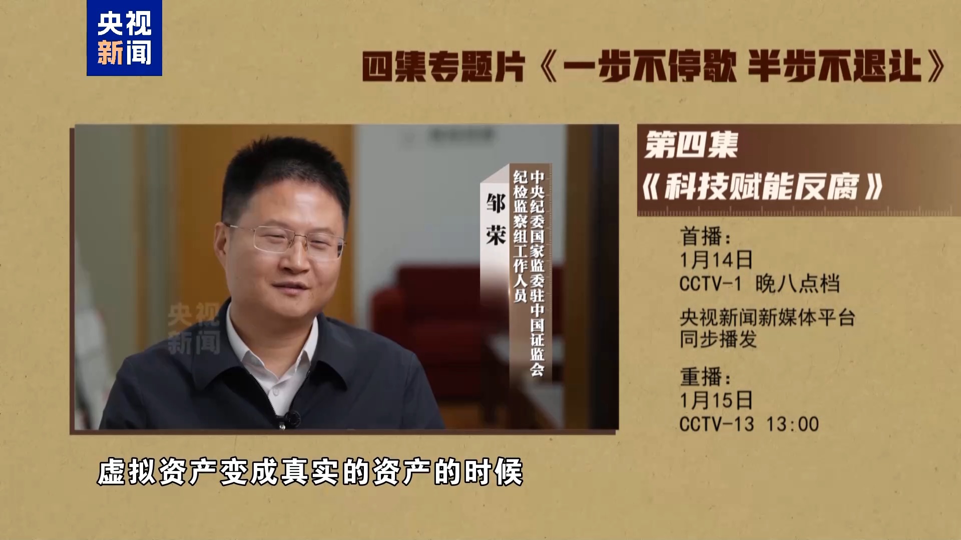 視頻丨年度反腐大片第四集《科技賦能反腐》今晚播出進入新時代,在以習近平同志為核心的黨中央堅強領(lǐng)導下,我們黨對反腐敗斗爭的規(guī)律性認識越來越深入,開展反腐敗斗爭的手段越來越豐富,推進反腐敗斗爭的方式越來越科學,反腐敗戰(zhàn)果不斷擴大,成功走出一條中國特色反腐敗之路。 點擊圖片查看視頻 電視專題片《一步不停歇 半步不退讓》第四集《科技賦能反腐》,講述紀檢監(jiān)察機關(guān)豐富防治新型腐敗和隱性腐敗有效辦法,以信息化賦能正風反腐,充分運用科技手段精準發(fā)現(xiàn)不正之風和腐敗問題線索、迅速有效突破案件,著力提升智慧反腐、科技反腐水平?偱_央視綜合頻道1月14日晚8點檔播出,央視新聞新媒體平臺同步播發(fā)。 境外不是法外,紀檢監(jiān)察機關(guān)加大跨境腐敗治理力度,嚴格依規(guī)依紀依法,運用信息技術(shù)深挖細查,讓腐敗行為在境外也蓋不住、藏不了。
