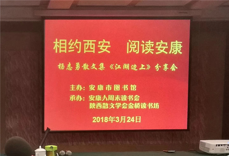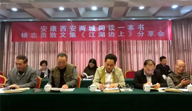 本期讀書(shū)會(huì)由安康市圖書(shū)館主辦,陜西省散文學(xué)會(huì)金橋讀書(shū)坊、安康人周末讀書(shū)會(huì)共同承辦,閱讀書(shū)目為青年作家、陜西工人報(bào)社記者楊志勇散文集《江湖邊上》。 中國(guó)郵政作協(xié)副主席、陜西省職工作協(xié)主席周養(yǎng)俊作了導(dǎo)讀。他從文學(xué)出發(fā),客觀地介紹了自已所認(rèn)識(shí)的楊志勇,他說(shuō)楊志勇是一位寫(xiě)作勤奮、涉獵題材廣泛、佳作頻出、富有責(zé)任的作家,是作家中的勞模。他從閱讀出發(fā),指出《江湖邊上》對(duì)社會(huì)觀察深刻,對(duì)人生思考深入,具有擔(dān)當(dāng)精神,語(yǔ)言幽默風(fēng)趣,富有很強(qiáng)的可讀性。