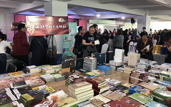 展會現(xiàn)場 本屆絲路圖書交易博覽會以“秦風匯書韻,絲路傳文明”為主題,為期兩天,展覽面積7000平方米,展出全國200多家出版社的3萬余種優(yōu)秀出版物,設(shè)置精品圖書、專題特色圖書、館藏圖書、新品圖書、文化用品等五大特色展區(qū),集展示、銷售、訂貨、館配團購、宣傳推廣等功能于一體,是陜西省2018年全民閱讀暨“三秦書月”活動的重要組成部分。來自全省的240余家公共圖書館、高校圖書館、實體書店前來集中采購圖書。