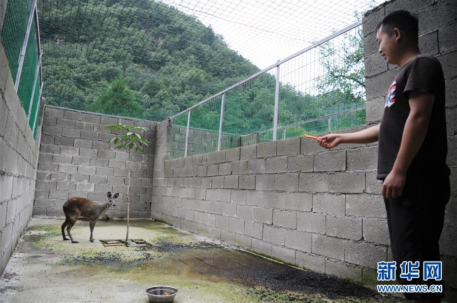 7月12日,在寧陜縣新場鎮(zhèn),養(yǎng)殖人員在為林麝投食。近年來,陜西省寧陜縣在保護秦嶺生態(tài)環(huán)境的基礎(chǔ)上,結(jié)合本地環(huán)境資源優(yōu)勢,大力發(fā)展林麝養(yǎng)殖、梅花鹿養(yǎng)殖和辣椒種植等特色產(chǎn)業(yè),帶動農(nóng)民脫貧增收。新華社記者 張博文 攝