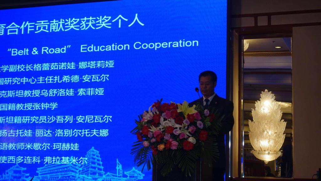 陜西省教育廳副廳長(zhǎng)趙昶葆主持開(kāi)幕式 在此大環(huán)境下,陜西省支持相關(guān)高校成立多個(gè)中亞學(xué)院、絲綢之路研究院,并發(fā)起成立“絲綢之路大學(xué)聯(lián)盟”和“一帶一路”職業(yè)教育聯(lián)盟,吸引了眾多國(guó)家和地區(qū)的多個(gè)高校參與,教育交流平臺(tái)得到加快構(gòu)建;陜西在辦的中外(內(nèi)地與港澳臺(tái))合作辦學(xué)項(xiàng)目和機(jī)構(gòu)達(dá)到39個(gè),累積畢業(yè)學(xué)生20400余人,中國(guó)第一個(gè)阿拉伯語(yǔ)中外合作辦學(xué)項(xiàng)目和中國(guó)西部第一個(gè)高職類(lèi)中外合作辦學(xué)機(jī)構(gòu)、藝術(shù)類(lèi)中外合作辦學(xué)機(jī)構(gòu),都相繼落戶陜西高校,多所高校的中外合作辦學(xué)機(jī)構(gòu),被納入中俄、中英等人文交流機(jī)制的重點(diǎn)項(xiàng)目,中外合作辦學(xué)得以大力推進(jìn);此外,“留學(xué)陜西”工作再創(chuàng)新高,2017年陜西共吸引來(lái)自156個(gè)國(guó)家和地區(qū)的11160名留學(xué)生來(lái)陜學(xué)習(xí)或進(jìn)修,其中“一帶一路”國(guó)家留學(xué)生6036名,占陜西省留學(xué)生總數(shù)的51.7%。
