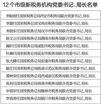 陜西省12個(gè)市級(jí)新稅務(wù)機(jī)構(gòu)昨日掛牌