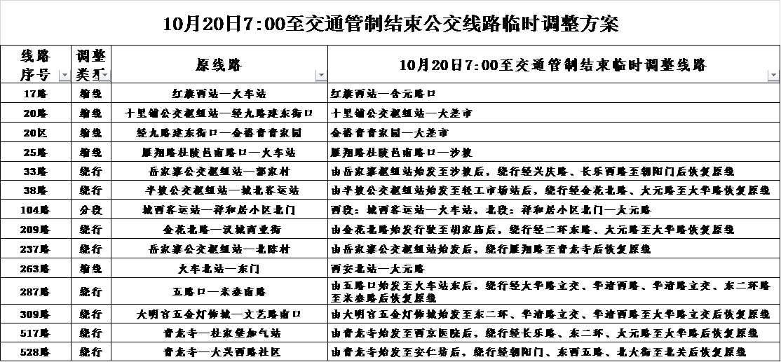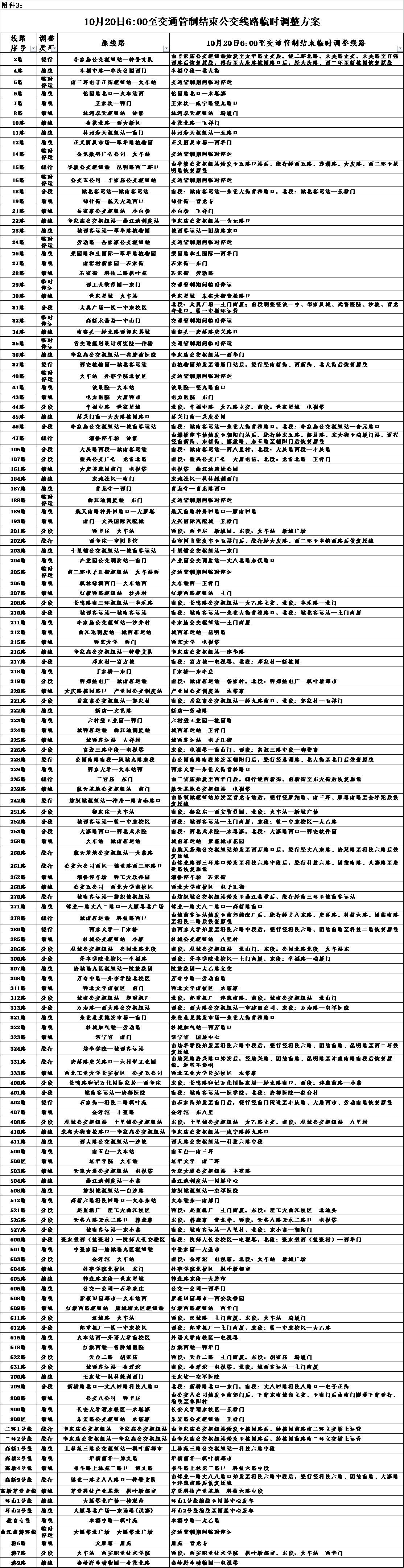 10月20日6:00至交通管制結(jié)束公交線路臨時調(diào)整方案
