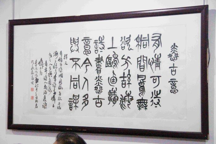 40集電視連續(xù)劇《書院門》的編劇南巖先生四十余年臨習(xí)先秦《石鼓文》深得其金石、古籀、書宗三味。對其骨法用筆和涵蓋繪畫、書法、篆刻的內(nèi)涵領(lǐng)悟尤深。本次展出的五十幅作品,包含篆隸楷行,筆筆到位、結(jié)字點(diǎn)畫,用筆都見功夫!一個(gè)作家、編劇能把中國書法的傳統(tǒng)精髓了然于胸,發(fā)諸筆端、躍然紙上著實(shí)令人驚嘆!縱觀南巖先生這次書法展覽,其線條猶如“萬歲枯藤”老辣、古樸、蒼潤,石鼓文篆體結(jié)字在吳昌碩和劉自櫝之間自出新意。其隸書結(jié)字能別開生面寫出意趣,另有一番味道令觀賞者玩味!其行書上追羲獻(xiàn)二王,下承宋明米芾王鐸氣韻連貫、章法跌宕起伏,既沉著痛快又不失瀟灑多姿!“社會主義核心價(jià)值觀”首先是南巖先生書寫和表現(xiàn)的內(nèi)容,突出地表現(xiàn)了南巖先生書法藝術(shù)的時(shí)代性、思想性 !