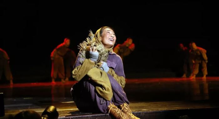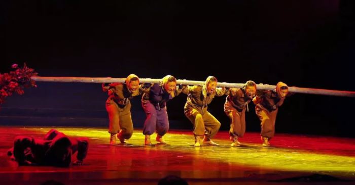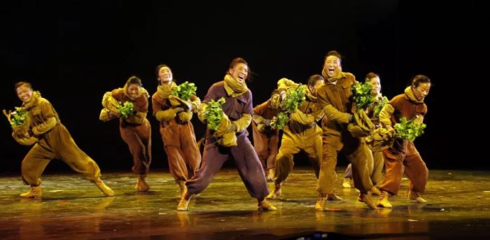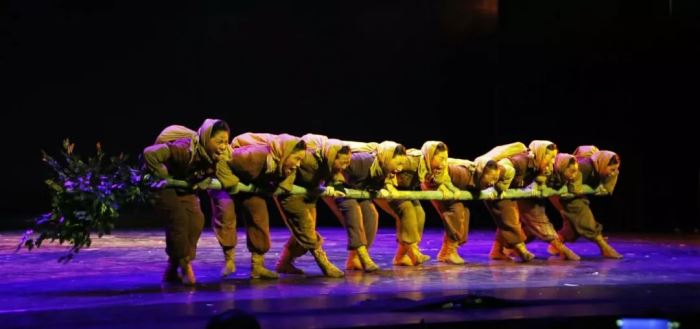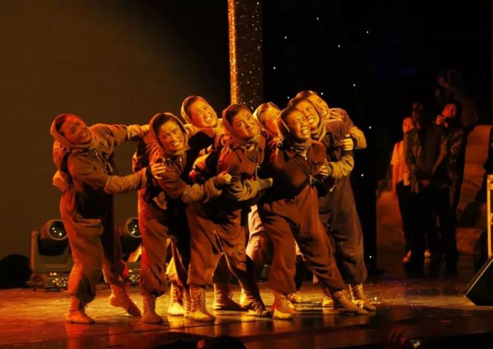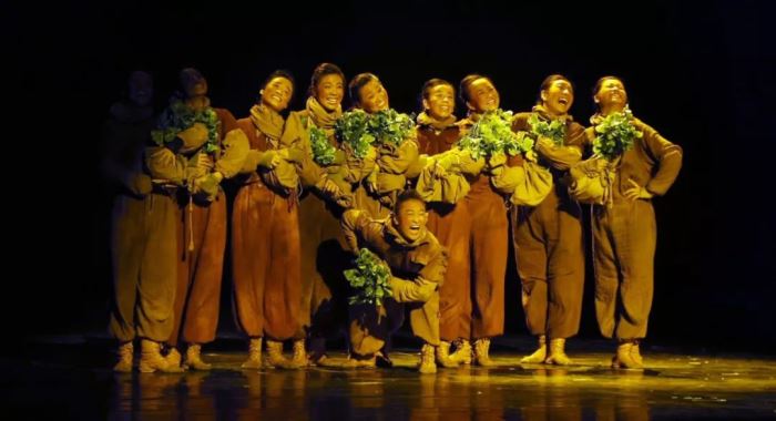 當(dāng)昔日的沙漠變成綠洲,攜手共建的美麗家園出現(xiàn)在眼前,她們的臉上洋溢著燦爛的笑容。(圖:大雄) 創(chuàng)作背景 毛烏素沙漠是中國四大沙地之一,位于陜西省榆林地區(qū)和內(nèi)蒙古自治區(qū)鄂爾多斯市之間,面積達(dá)4.22萬平方公里,其中神木境內(nèi)51%的地域就是毛烏素沙漠。 榆林市地處毛烏素沙漠腹地,常年深受黃沙侵?jǐn)_。當(dāng)?shù)亓鱾髦痪漤樋诹铮骸吧礁弑M禿頭,灘地?zé)o樹林;黃沙滾滾流,十耕九不收!边@是榆林人民生活的真實寫照。 1959年以來,榆林人民積極響應(yīng)“植樹造林、綠化祖國”號召,大力興建防風(fēng)林帶,引水拉沙,引洪淤地,開展了改造沙漠的巨大工程。到了21世紀(jì)初,已經(jīng)有600多萬畝沙地被治理,止沙生綠。80%的毛烏素沙漠得到治理,水土也不再流失,黃河的年輸沙量足足減少了四億噸。 陜北治沙能有如今的成果,離不開所有為此辛苦付出的治沙英雄們,他們無私無畏的舉動值得被永遠(yuǎn)銘記,他們對自己賴以生存的家園的熱愛值得被世人傳頌。 作品簡介 習(xí)總書記提出“綠水青山就是金山銀山”的科學(xué)論斷,并對“兩山”理論的不同階段做了詳細(xì)論述,這一重要論述深深觸動了身處毛烏素沙漠腹地的陜北人民。《毛烏素沙漠的女人們》以當(dāng)代舞的手段講述了常年奮斗在毛烏素沙漠腹地的女性,守護(hù)綠色家園的可歌可泣事跡。整場舞蹈用充滿生命活力與藝術(shù)張力的肢體語言,集中表現(xiàn)沙漠腹地的女人們防沙治沙、植樹造林的不凡之舉。展示了她們堅守心底一抹綠色希望,在大漠風(fēng)沙面前誓不退縮,用深厚素樸的母愛之心,哺育守護(hù)一棵棵生命的幼苗,攜手共建美好家園的精神追求,讓青山綠水成為大美神木的一張文化名片。 關(guān)于群星獎 中國藝術(shù)節(jié)是我國規(guī)格最高、最具影響力的國家級文化藝術(shù)盛會。群星獎是文化和旅游部為繁榮群眾文藝創(chuàng)作,促進(jìn)社會文化事業(yè)的繁榮與發(fā)展而設(shè)立的全國群眾文化藝術(shù)政府最高獎。本屆群星獎全國共有84個作品入圍決賽,陜西省入圍數(shù)量居西北五省區(qū)首位。 幕后故事 《毛烏素沙漠的女人們》從2017年創(chuàng)排到如今,演員們夏天種樹體驗生活,冬天上山拔草看護(hù)樹苗,每天排練時間至少在10小時。這期間,演員們一共磨破了300多雙舞蹈鞋,磨光了100多株道具樹苗。演員們用汗水和實力演繹著毛烏素沙漠的女人們不畏艱難的品質(zhì),展現(xiàn)了毛烏素沙漠人不屈不撓、堅持不懈的精神。