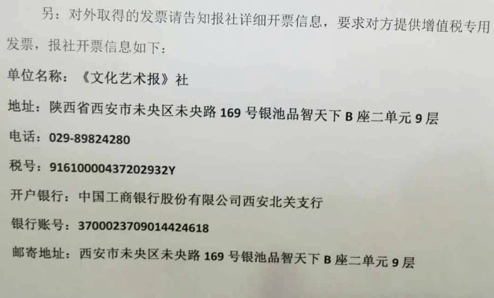 附錄: 《文化藝術(shù)報》社法律顧問: 陜西許小平律師事務(wù)所律師 徐曉云 劉昕雨 報社地址: 西安市未央路169號銀池品智天下B座2單元9層(經(jīng)開區(qū)常青二路口) 《文化藝術(shù)報》編輯部電話:029—89370002 《文化藝術(shù)報》編輯部郵箱:whysbbjb@126.com 廣告發(fā)行部:029—89820013(電話兼?zhèn)髡妫?/p> 辦公室:029—89824280
