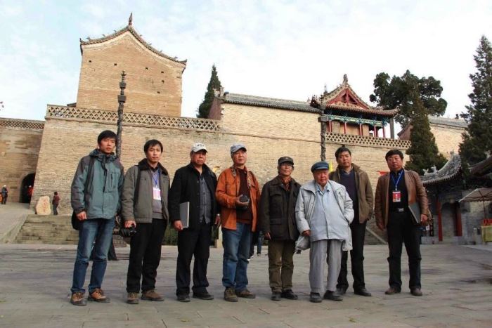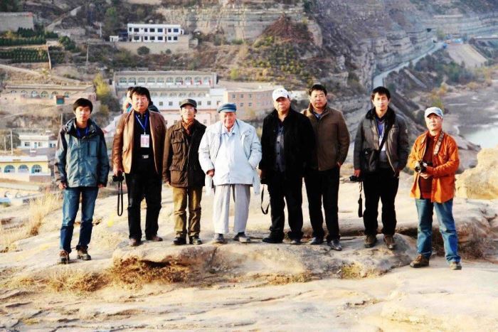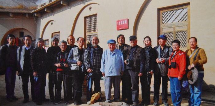 2012年,青年畫家高海平和劉文西老師在陜西定邊鹽池359旅鹽廠遺址。背景窯洞是359旅在長城遺址掏挖后居住地。 本組圖片提供/高海平