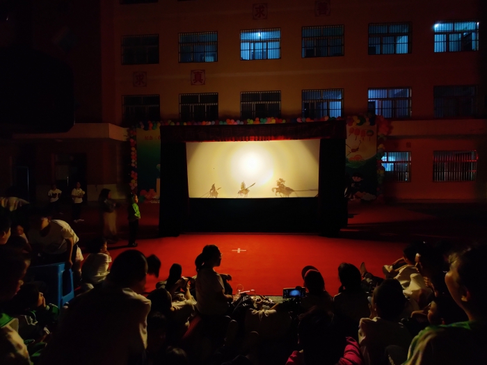 30日晚,由陜西民間藝術劇院的演員孟丁、張昊、呼永凱、雷勇、侯璞、龔朝陽、王淑娟、趙虹、周秦、王開元演出的皮影戲?qū)鲈诤艏掖ㄍ耆W上演。藝術家們表演了《賣雜貨》《鶴與龜》等皮影戲經(jīng)典劇目,他們靈動傳神的演繹讓在場觀眾零距離感受到了皮影的傳統(tǒng)魅力。