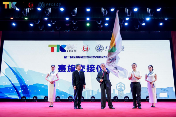 西安交通大學盧曉云、福建農(nóng)林大學劉學莘分享參賽經(jīng)驗。浙江大學黨委副書記葉民從西安交通大學黨委副書記、校長王樹國手中接過賽旗,完成賽旗交接儀式。