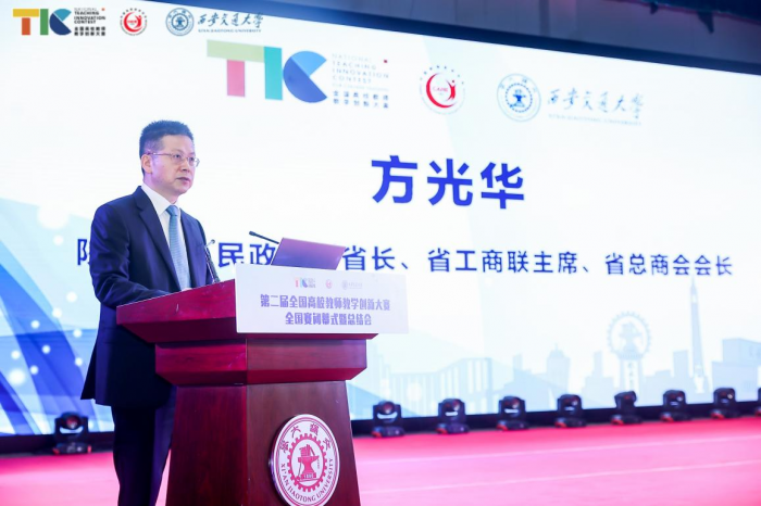 陜西省在第二屆全國高校教師教學創(chuàng)新大賽全國賽中勇奪第一文化藝術(shù)網(wǎng)-文化藝術(shù)報訊(全媒體記者 宋光)7月31日上午,第二屆全國高校教師教學創(chuàng)新大賽全國賽閉幕式暨總結(jié)會在西安交通大學興慶校區(qū)憲梓堂召開。 全國政協(xié)委員、中國高等教育學會副會長、國家民委原副部長級專職委員管培俊,陜西省人民政府副省長、省工商聯(lián)主席、省總商會會長方光華,教育部高等教育司司長吳巖,西安交通大學黨委副書記、校長王樹國,陜西省委教育工委副書記、省教育廳廳長劉建林,西安交通大學學術(shù)委員會主任、中國科學院院士、國家級教學名師何雅玲,陜西省政府學位委員會秘書長袁寧,中國高等教育學會副會長、教育部高等教育司原司長張大良,中國高等教育學會監(jiān)事長孫維杰,中國高等教育學會副監(jiān)事長遲剛毅,中國高等年教育學會監(jiān)事、國家開放大學副校長鞠傳進以及部分省份教育廳相關負責領導出席。閉幕式、總結(jié)會兩階段活動分別由中國高等教育學會副會長、秘書長姜恩來,西安交通大學黨委副書記、校長王樹國主持。