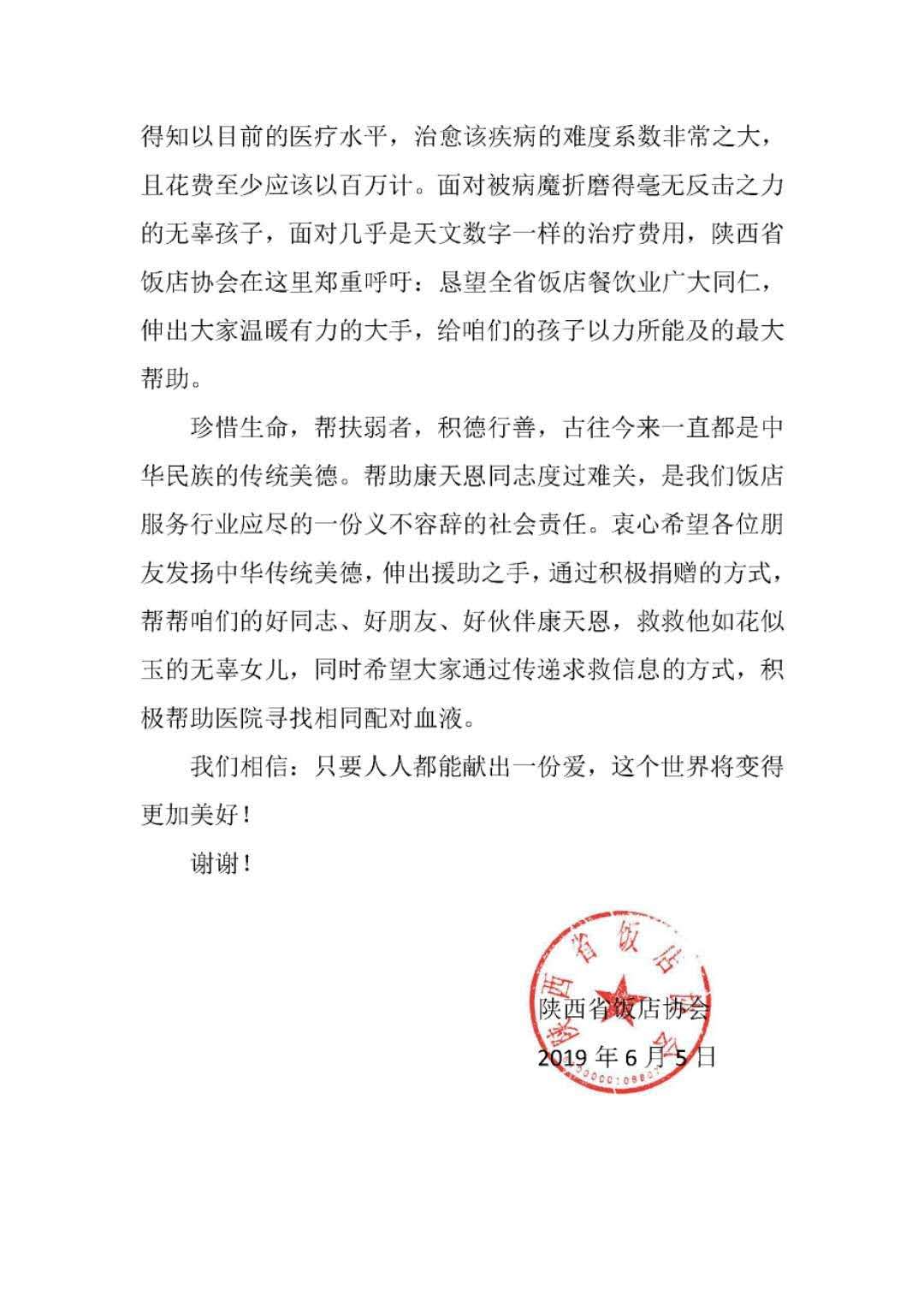 康天恩感到特別無奈,含淚寫下求助信,借助水滴籌平臺向社會求助?堤於麟娫挘18392871811 陜西省飯店協(xié)會目前也已經(jīng)發(fā)出倡議書,號召全體業(yè)界同仁幫助康天恩一家。
