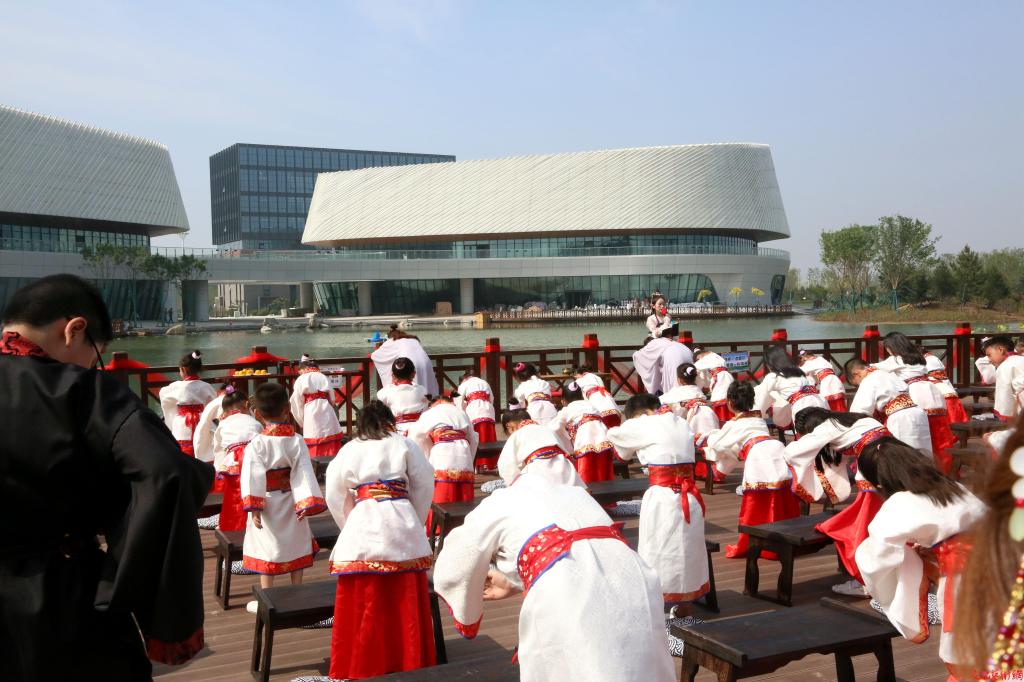 中國酵素城:觸摸文明 詩詠端午文化藝術網(wǎng)-文化藝術報訊(通訊員 王毅)“在東方,有一條騰飛的巨龍;在東方,有一個巨龍的民族;在東方,有橫撇豎捺的方塊字……”在一聲聲稚嫩而又昂揚的聲音中,“觸摸文明詩詠端午”綠泡泡藝術實踐活動于6月7日在渭南經(jīng)開區(qū)中國酵素城舉行。活動以“經(jīng)典誦讀傳文明粽葉飄香話愛國”為主題,進行了著漢服習禮儀、端午知識解讀、祭奠屈原、祈福畫額、放花燈、詩歌誦唱、手工香包制作等豐富多彩的內(nèi)容。孩子們近距離接觸“歷史”,體驗傳統(tǒng)文化,以潛移默化,寓教于樂的形式,展示著中華民族精神,激發(fā)孩子們家國情懷。