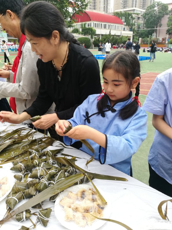 當(dāng)天的活動內(nèi)容豐富多彩,參會嘉賓們佩戴紅領(lǐng)巾與學(xué)校師生共同體驗(yàn)了“大手拉小手”包粽子、做香包、“百米長卷畫端午”等活動。觀看了“穿漢服 吟古韻”展示、“童心筑夢航模展”、“我們的節(jié)日——端午”主題作品展及“溯中華文化 頌愛國情懷”主題展演。舞蹈“艾葉飄香”將現(xiàn)場觀眾帶入古雅幽靜的文化氛圍;經(jīng)典誦讀《不滅的永恒》和情景劇《屈原》引領(lǐng)大家感受千古絕唱,體會端午韻味;朗誦名家海茵老師帶來的詩歌朗誦《理想》將全場氣氛推向高潮。節(jié)目最后,師生們共同送上詩歌朗誦《共筑七彩中國夢》,用質(zhì)樸的語言滿懷深情地抒發(fā)了對祖國的真摯情感。