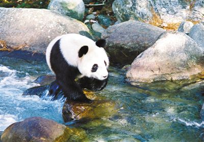 大熊貓過(guò)河。 雍嚴(yán)格攝(資料圖片)