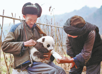 當(dāng)年何長(zhǎng)林夫婦為熊貓坪坪喂奶。 梁?jiǎn)⒒蹟z(資料圖片) 核心閱讀 何鑫小時(shí)候,爺爺用他的奶瓶救活了一只大熊貓幼崽。長(zhǎng)大后,何鑫成了飼養(yǎng)員,并且照顧了這只大熊貓。這段“奶瓶情緣”是陜西佛坪人保護(hù)大熊貓的縮影。 為確!皣(guó)寶”吃得安全,大古坪村民自家種的地,不用殺蟲(chóng)劑。 夏日秦嶺,草木蔥蔥。 秦巴小城陜西佛坪的一場(chǎng)規(guī)劃研討會(huì),從白天開(kāi)到了晚上!靶茇埲ι嵩趺床季?熊貓醫(yī)院如何設(shè)計(jì)?……”各路專(zhuān)家興致高漲,有時(shí)還爭(zhēng)得面紅耳赤。 今年初,秦嶺大熊貓佛坪繁育研究基地建設(shè)項(xiàng)目獲批。眼下,深山小城“開(kāi)足馬力”,熱盼基地建設(shè)早日落地。幾十年來(lái),給國(guó)寶大熊貓建樂(lè)園,已成為這片土地上的“全民自覺(jué)”。記者日前走進(jìn)陜西佛坪,探訪“全民護(hù)寶”背后的堅(jiān)守、感動(dòng)與初心。 祖孫三代延續(xù)“熊貓情緣” 5月的一天下午,佛坪“熊貓谷”,遠(yuǎn)道而來(lái)的大熊貓樂(lè)樂(lè),入住整葺一新的園區(qū),與熊貓小丫成了鄰居。 90后飼養(yǎng)員何鑫已入職10年,小丫、樂(lè)樂(lè)是他照管的第九、十個(gè)“心肝寶貝”!按蛐∮浭缕穑謇锶司驼f(shuō),我這輩子跟熊貓結(jié)了緣。”何鑫對(duì)記者笑言,“每次見(jiàn)到熊貓,我都有天生的‘親近感’! 小伙子所言不虛。親近感背后,藏著一段“熊貓情緣”。 1991年冬天,陜西佛坪國(guó)家級(jí)自然保護(hù)區(qū)管理局員工汪鐵軍和同事冒雪巡山。行至三官?gòu)R,見(jiàn)一只大熊貓幼崽趴在雪地枯草里,奄奄一息。汪鐵軍趕忙把它摟進(jìn)棉襖里,一行人跋涉?zhèn)z小時(shí),摸黑趕回三官?gòu)R村!昂伍L(zhǎng)林家小孫子剛1歲,他家肯定有奶粉!” 進(jìn)了屋,何長(zhǎng)林和老伴二話(huà)沒(méi)說(shuō),拿起孫子的奶粉、奶瓶,沖了滿(mǎn)滿(mǎn)一瓶熱奶。何老漢像抱孫子一樣,把熊貓摟在懷里;老太太彎著腰,一滴滴喂奶粉。小家伙嘗到甜頭,叼住奶嘴吮起來(lái),一屋人長(zhǎng)松一口氣。 此后兩年,小家伙在保護(hù)區(qū)管理局里茁壯成長(zhǎng),還有了名字“坪坪”,寓意平平安安。1993年,坪坪離開(kāi)佛坪縣,來(lái)到陜西省珍稀野生動(dòng)物搶救飼養(yǎng)研究中心。就在這一年,何長(zhǎng)林老人離開(kāi)了人世。 二十載時(shí)空流轉(zhuǎn),何長(zhǎng)林老人的兒孫兩輩,如今分別成為大熊貓野外監(jiān)測(cè)員、飼養(yǎng)員。 “當(dāng)年,爺爺用我的奶瓶搶救坪坪時(shí),我才1歲。”崎嶇山路上,何鑫緊跟父親何慶貴,豁開(kāi)半人高的藤蔓,上山探尋野生大熊貓的蹤跡。山野蔥蘢,父子倆斜挎水壺,穿梭在茫茫山林里。 穿過(guò)山腰竹林,二人在山石上休憩片刻。何鑫告訴記者,他當(dāng)飼養(yǎng)員后,坪坪也回到了闊別已久的佛坪。“按人類(lèi)年齡推算,那時(shí)它已是70多歲的老人! “奶瓶故人”重逢后不久,坪坪安然離世。其晚年由何鑫精心照管,福氣不淺。 村民自發(fā)參與了近20次大熊貓救助 從縣城驅(qū)車(chē)兩小時(shí),進(jìn)入自然保護(hù)區(qū)緩沖區(qū)!靶茇埓濉贝蠊牌汉01200米,依山傍水、恬靜清幽。 村民宋建才握著鋤頭,在金水河畔修整菜畦!白騼喊,還看見(jiàn)大熊貓?jiān)诤舆呴e逛哩。我沒(méi)敢言語(yǔ),生怕驚擾了它! 這并非宋建才首次邂逅野生大熊貓。去年冬天,他拉著馬、帶著狗,去山上運(yùn)貨。穿過(guò)竹林時(shí),遠(yuǎn)處一只體長(zhǎng)1米多的熊貓,搖頭晃腦地向前走來(lái)。看著“國(guó)寶”慢慢靠近,宋建才招呼馬和狗,齊齊讓出道來(lái)。走到六七米開(kāi)外,熊貓停下腳步瞅了瞅,搖頭晃腦地鉆進(jìn)密林,接著爬上旁邊的樹(shù),開(kāi)始蕩秋千。 “馬不驚、狗沒(méi)叫,它們經(jīng)常見(jiàn)熊貓,習(xí)慣了就不害怕!彼谓ú畔蛴浾咝ρ裕按笮茇堃裁靼祝藗儾粫(huì)傷害它,一點(diǎn)兒都不慌! 俯瞰秦嶺山谷,林木蓊郁、竹海茫茫。眺望大古坪至三官?gòu)R一帶,落日余暉灑滿(mǎn)山野,金色霞光下難掩盎然綠意。據(jù)專(zhuān)家推測(cè),平日里,二三十只野生大熊貓?jiān)谶@座“森林樂(lè)園”里悠游嬉鬧。夏陽(yáng)漸暖,“國(guó)寶”尋找嫩竹,也常來(lái)村莊串門(mén)子。 “國(guó)寶”做客,如何應(yīng)對(duì)?村支書(shū)王小林早有準(zhǔn)備。 “每次開(kāi)動(dòng)物保護(hù)大會(huì),村民都搬上小板凳,非常積極!蓖跣×指h上宣傳隊(duì),走村入戶(hù)宣介大熊貓保護(hù),“如今,村民自發(fā)參與了近20次大熊貓救助! 為確保“國(guó)寶”吃上天然食材,大古坪村民自家種的地不用殺蟲(chóng)劑!靶茇埓濉崩,魔芋、中蜂等綠色產(chǎn)業(yè)如今蒸蒸日上,漸成致富新引擎。 “對(duì)熊貓好,它們感覺(jué)得到!蓖n翠山谷,王小林感慨,“和大熊貓做鄰居,有面子!” 滿(mǎn)目蒼翠為“國(guó)寶”裝飾溫馨家園 沿著金水河溯源而上,年近六旬的黨高弟巡山領(lǐng)路,駕輕就熟。 黨高弟是佛坪國(guó)家級(jí)自然保護(hù)區(qū)管理局一名高級(jí)工程師。自參加工作起,這條蜿蜒山徑,他走了30多年。 “佛坪、四川兩地的大熊貓,地域上已分隔30萬(wàn)年,形態(tài)差異明顯!秉h高弟邊上山,邊給記者介紹,“四川大熊貓臉長(zhǎng)嘴長(zhǎng),近似熊;佛坪大熊貓頭圓嘴短,更像貓,且已發(fā)